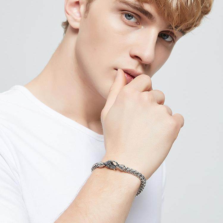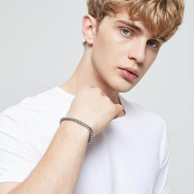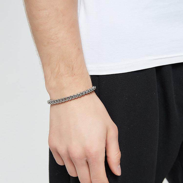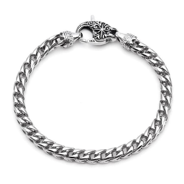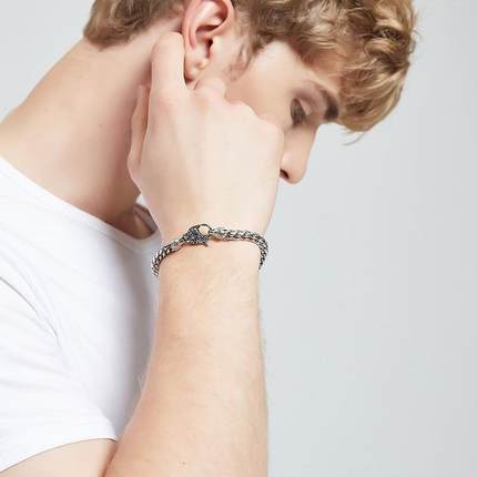 龙骨手链男生款小众高级感美式钛钢不掉色霸气痞帅手链男士潮银色