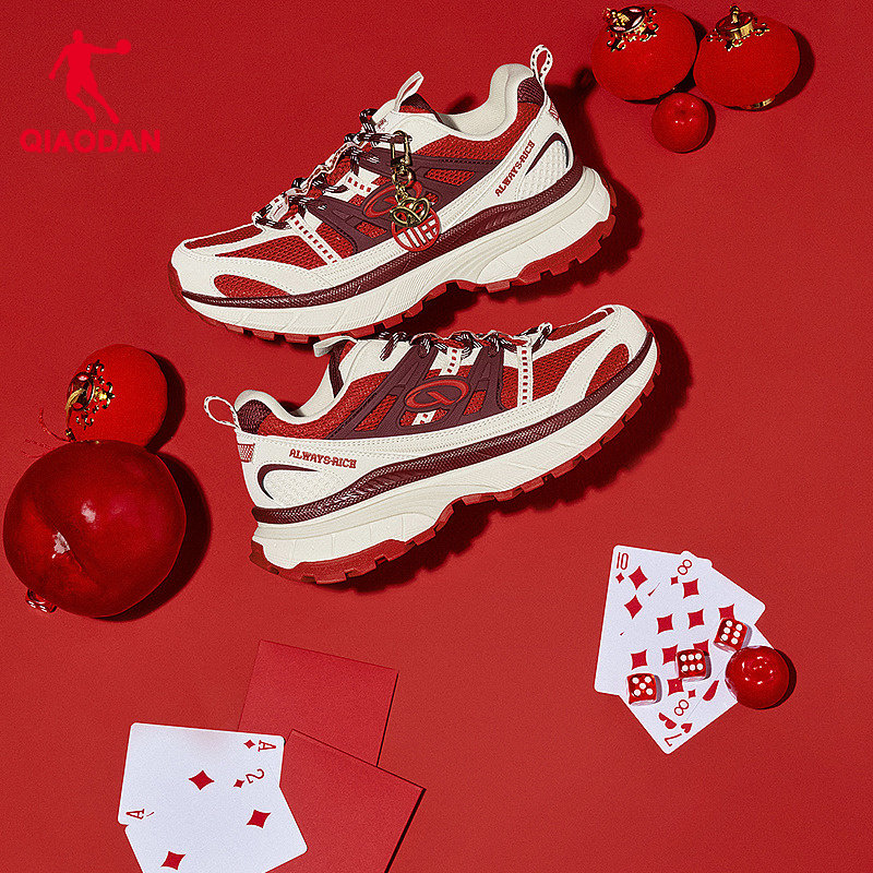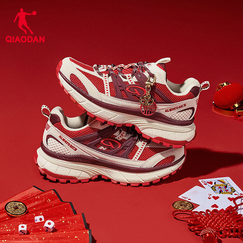 开元V3乔丹休闲鞋女2026冬季新年款潮流复古红色老爹鞋官方增高鞋