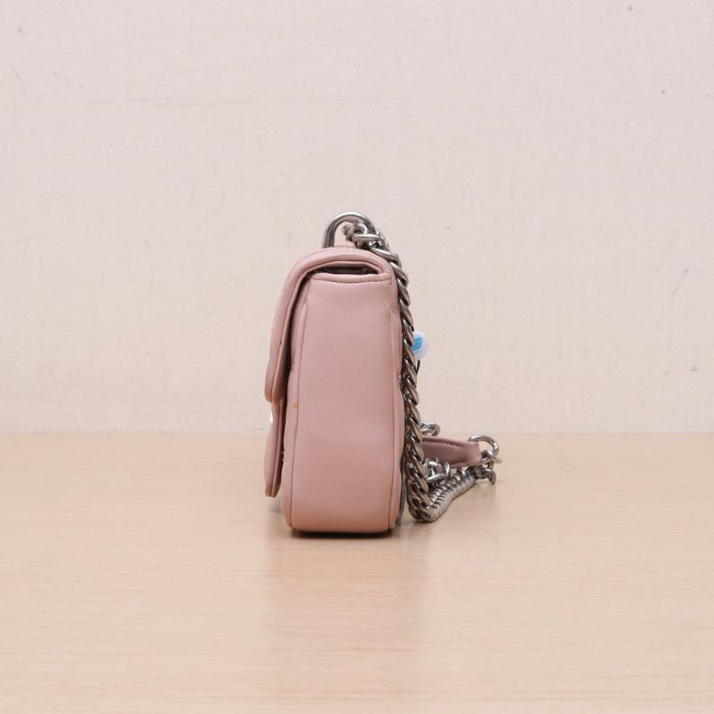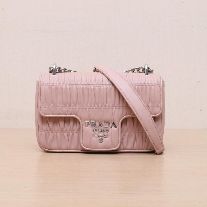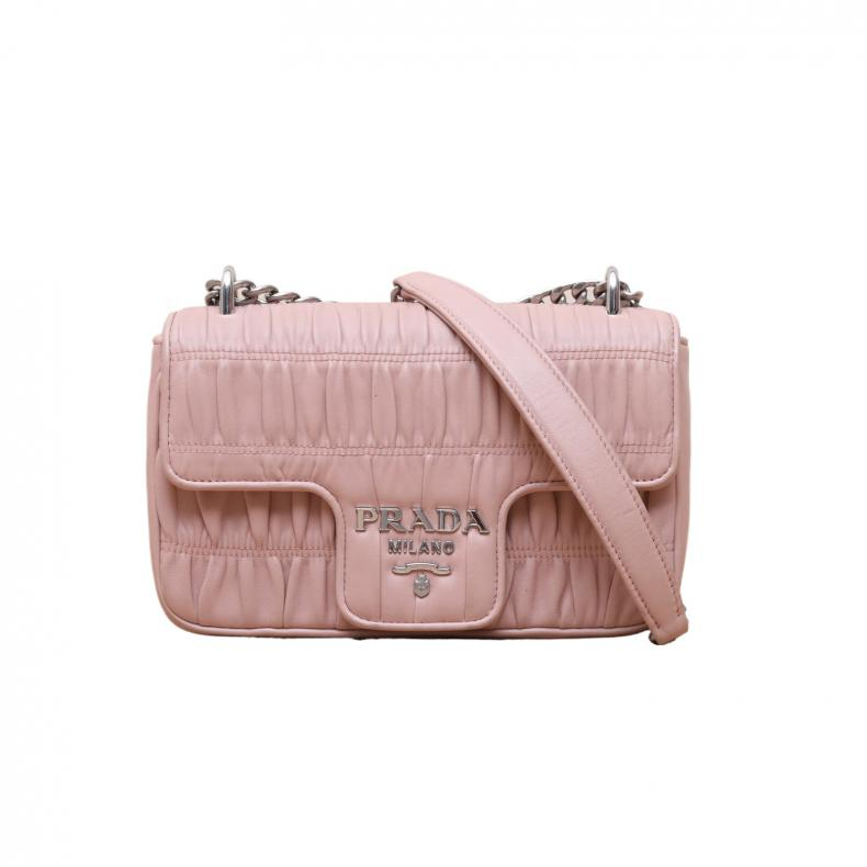 【自营】中古95新Prada/普拉达单肩包粉色皮革S褶皱小羊皮链条包