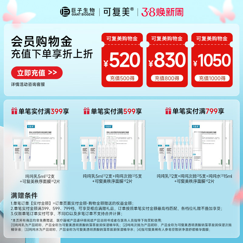 可复美柔肤水吨吨乳补水水乳保湿套装男女敏感肌护肤品爽肤水乳液