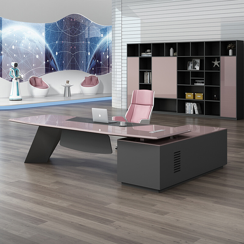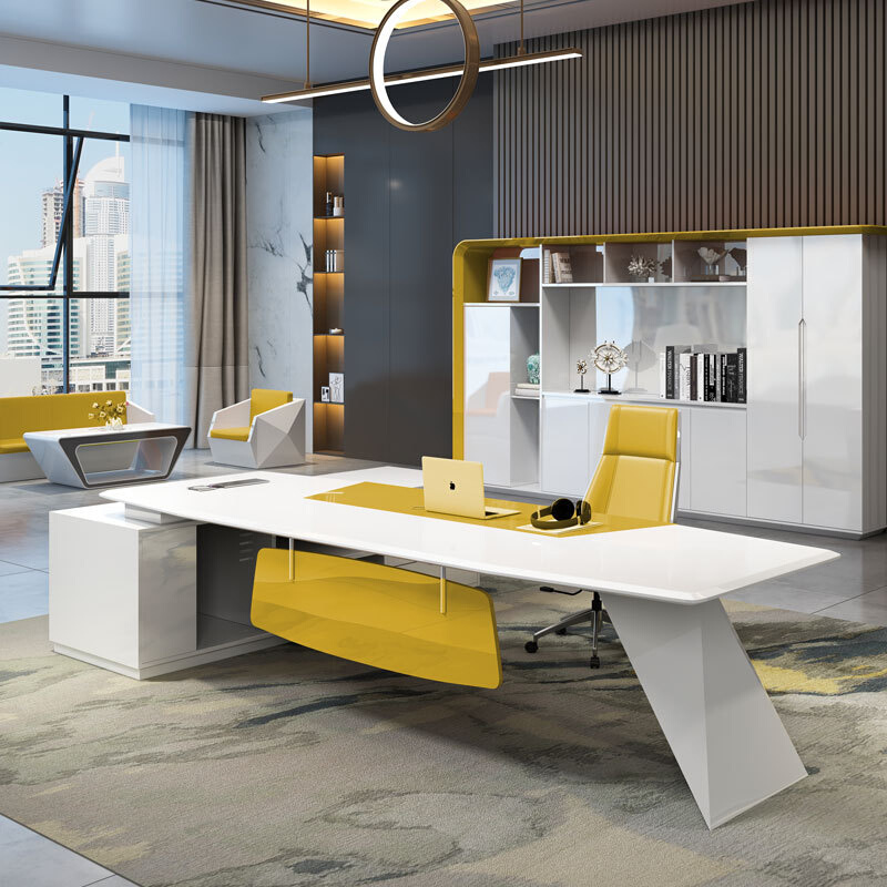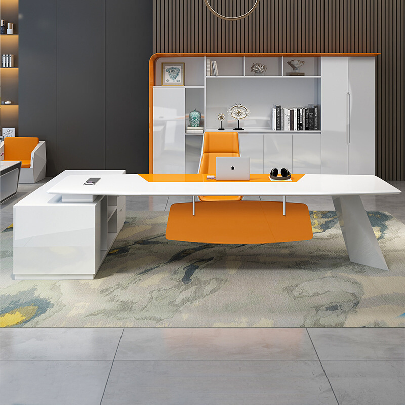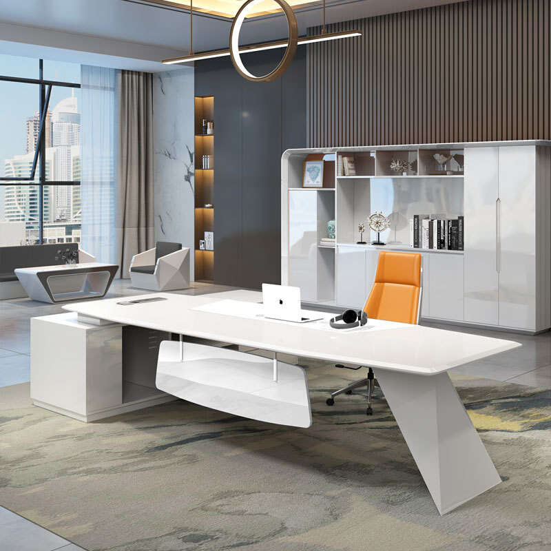 白色烤漆老板桌创意家具简约现代大班台总裁桌经理室办公桌椅组合