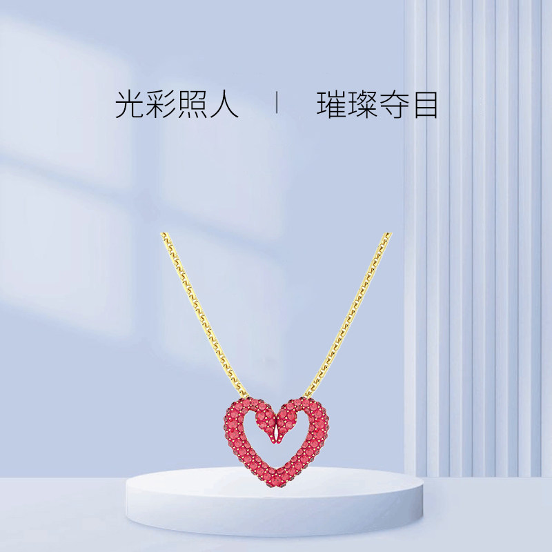 【自营】Swarovski/施华洛世奇Una密镶心形双天鹅链坠小码项链