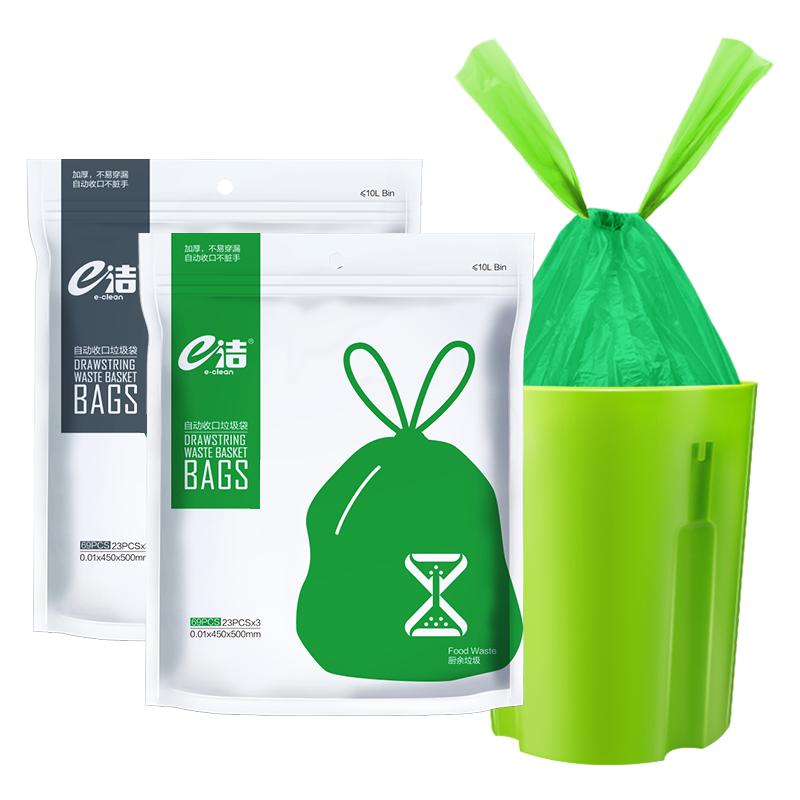 e洁垃圾袋干湿分类穿绳式加大一次性提绳塑料袋-天猫精灵