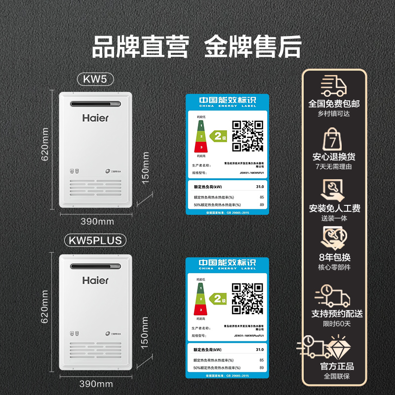 国补海尔燃气热水器家用天然气变频款16升L室外机KW5户外恒温防冻