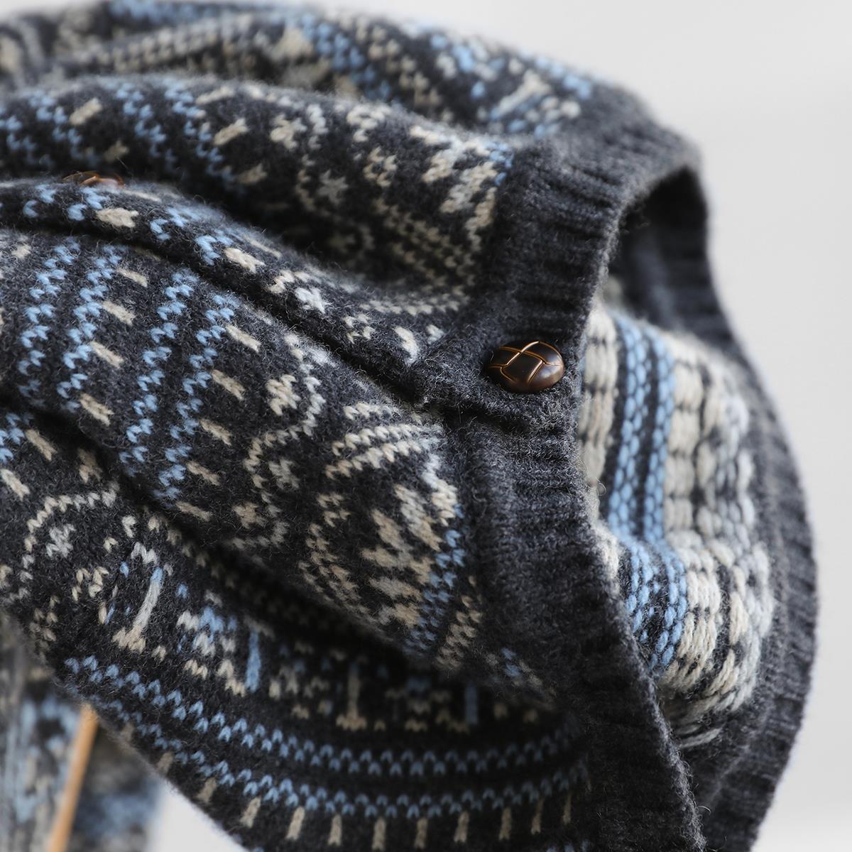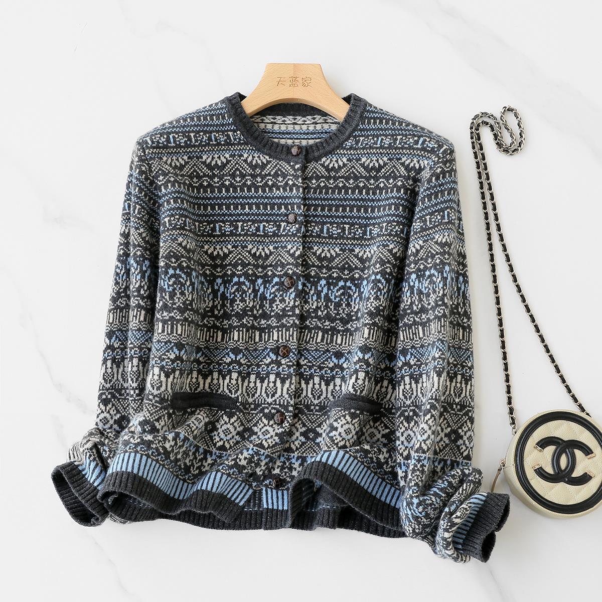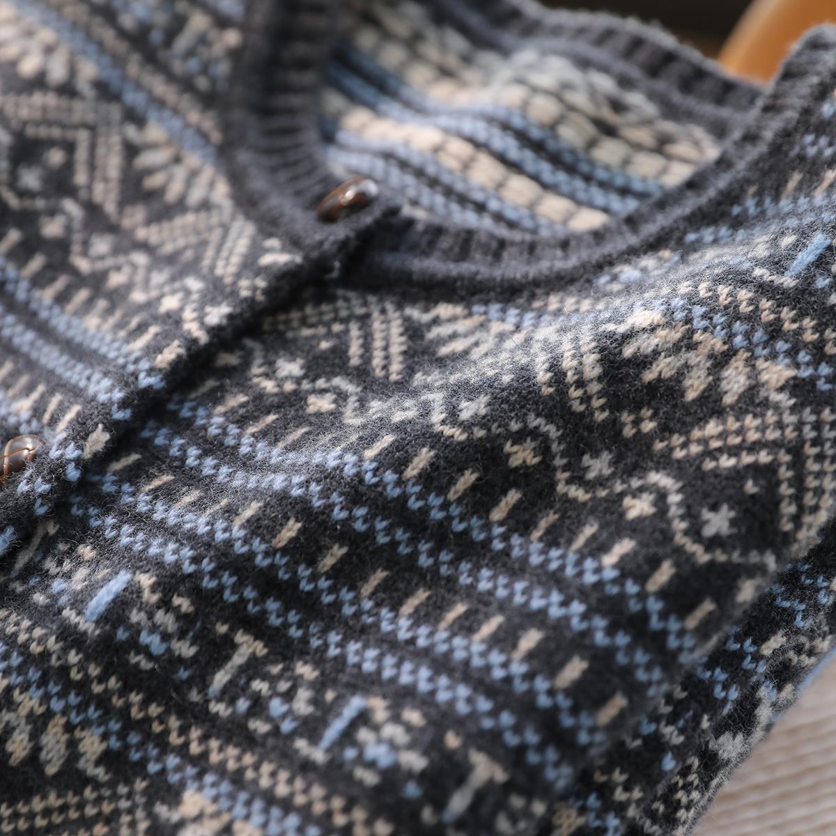 慵懒北欧风~重工费尔岛提花 超舒适纯羊毛圆领针织开衫毛衣女冬新