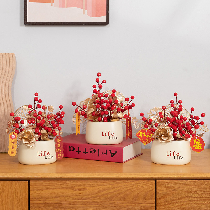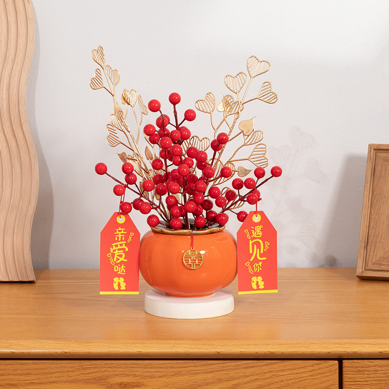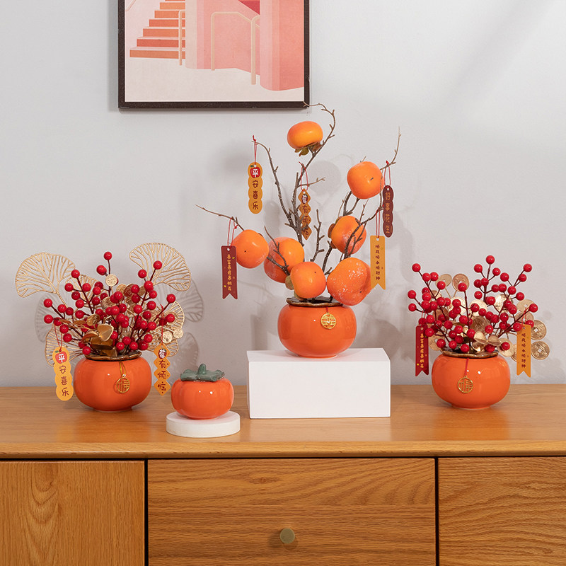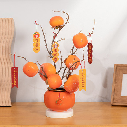 事事如意柿子摆件结婚乔迁之喜新居礼品创意家居客厅装饰品摆设花