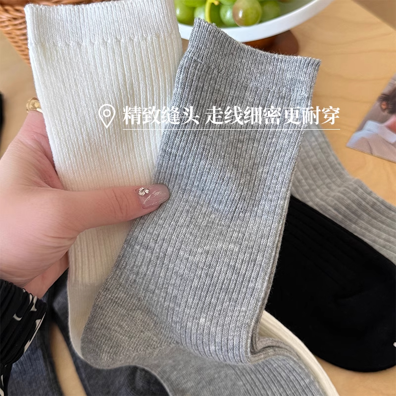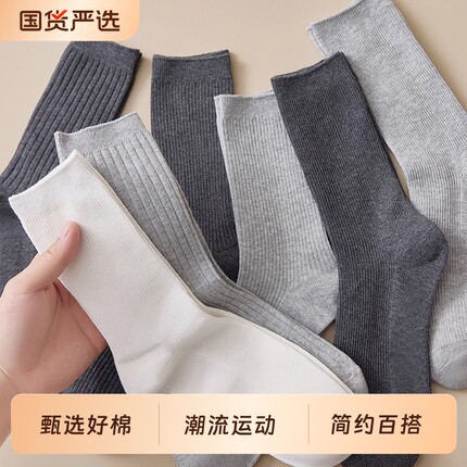 灰色袜子女堆堆袜春秋季学院风纯棉中筒袜秋冬白色无骨运动长筒袜