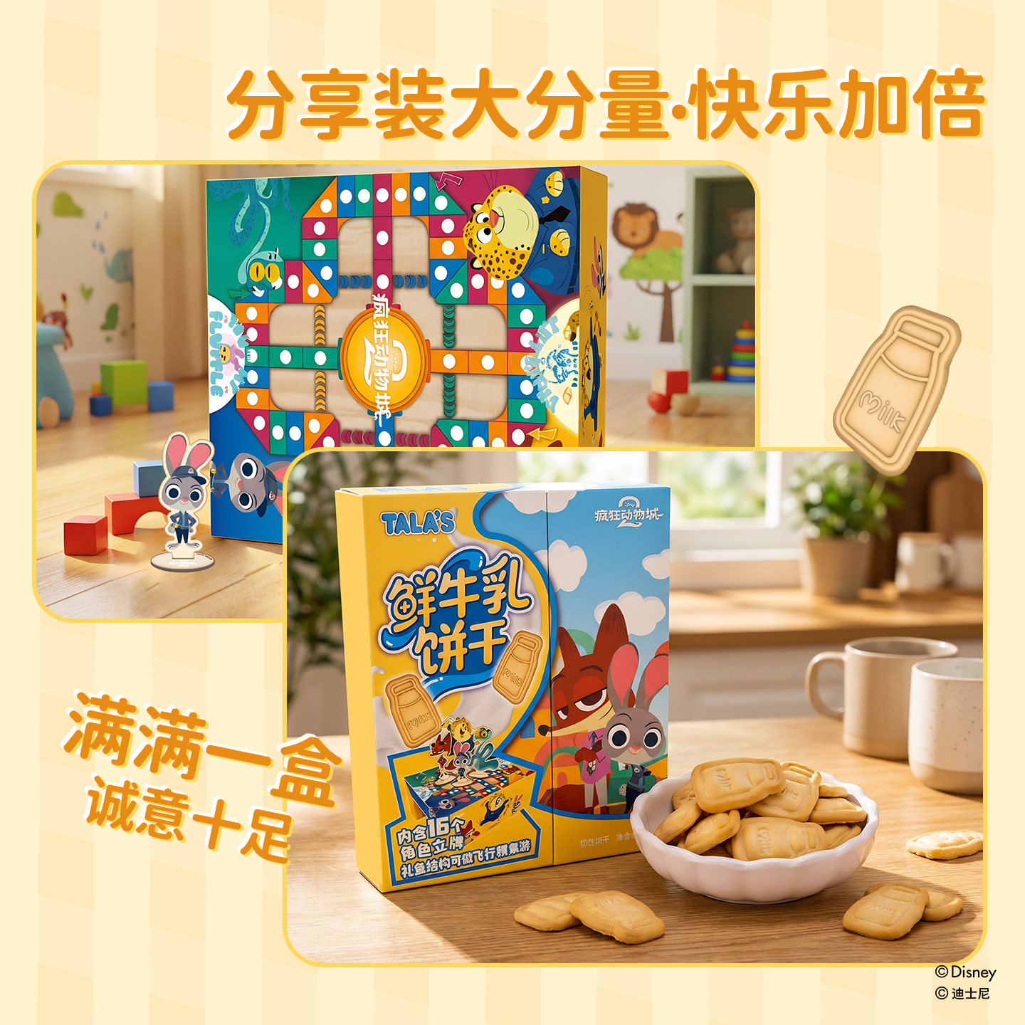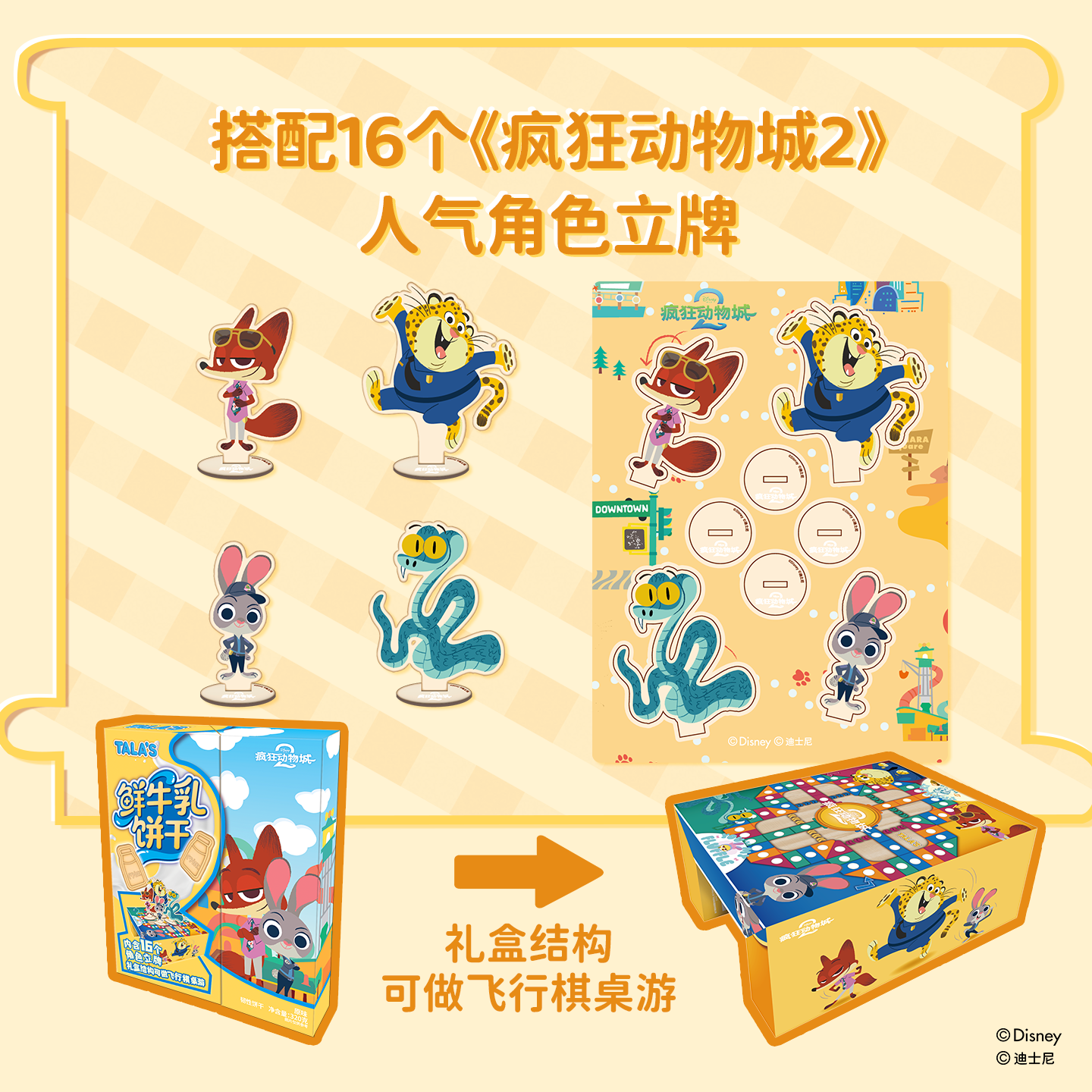 添乐卡通王疯狂动物城2联名鲜牛乳饼干迪士尼周边零食含角色立牌