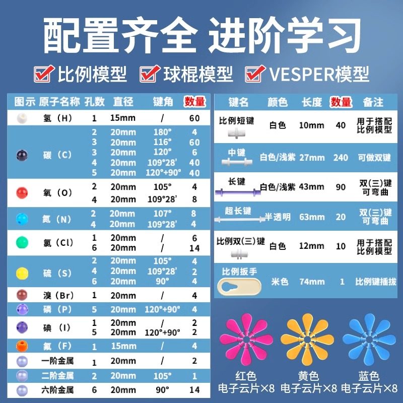 有机化学球棍模型套装实验器材分子结构高中学具元素玩具晶胞原子核全套教具演示中学生用金刚石石墨碳60模型