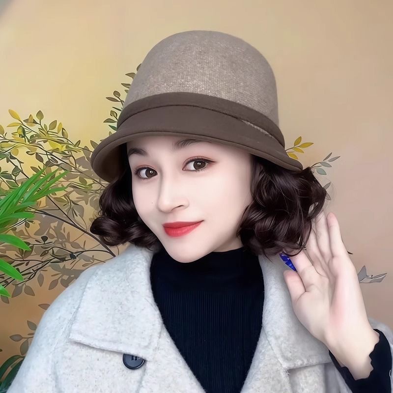 假发一体帽子女秋冬洋气渔夫帽短卷发全头套时尚妈妈款帽子假发