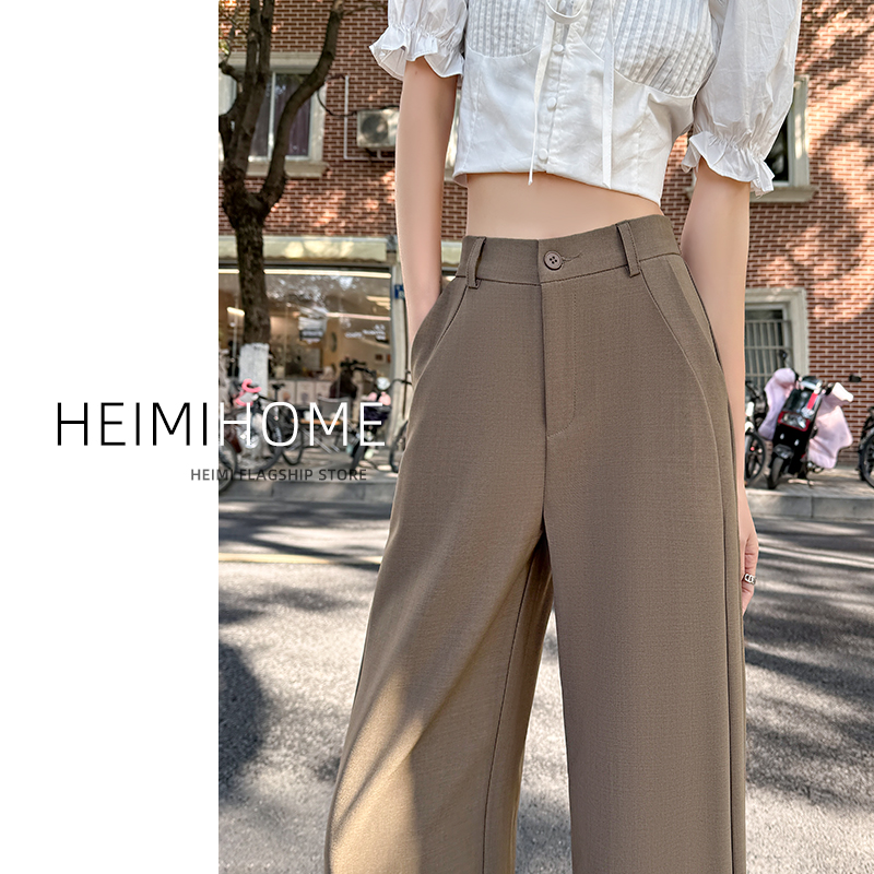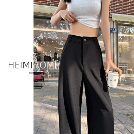 黑色窄版阔腿裤女春夏高级感高腰显瘦西装裤小个子拖地冰丝直筒裤