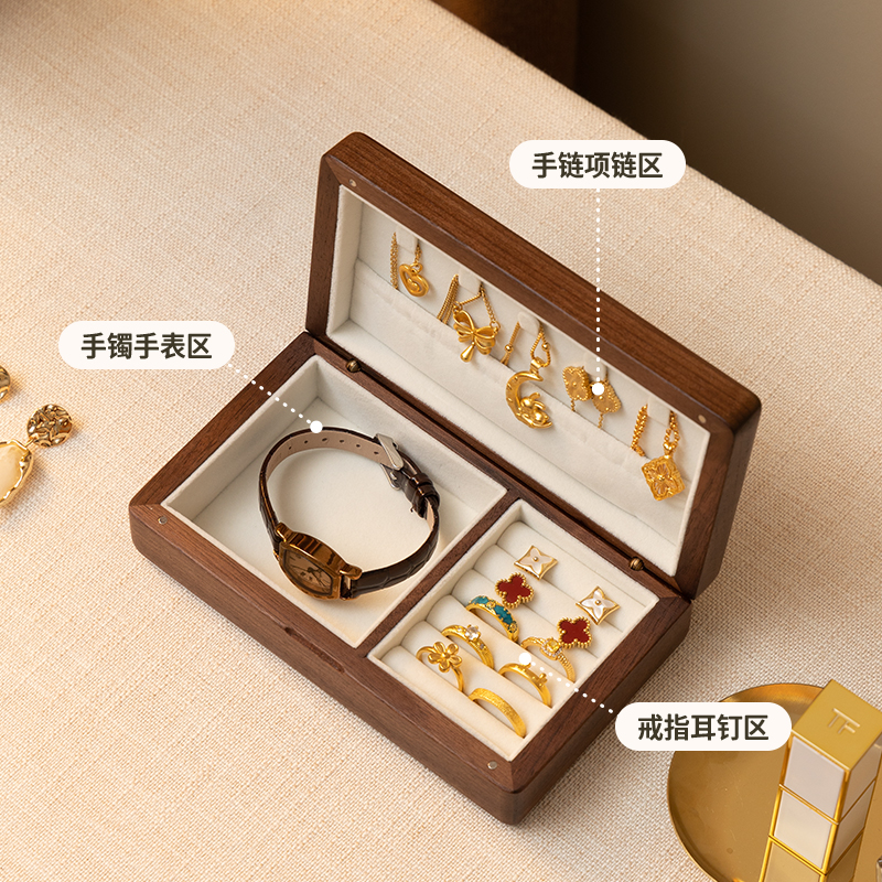 梵瀚 实木新款首饰收纳盒高档精致带锁耳饰戒指项链黄金珠宝盒子