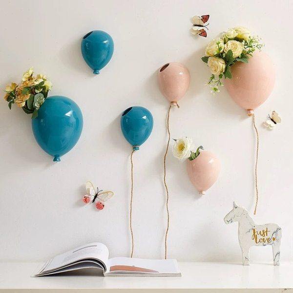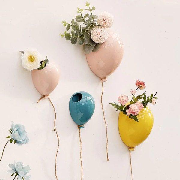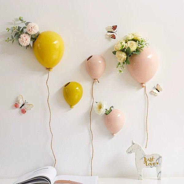 现简约壁挂色釉陶瓷气球挂壁小花 客厅背景创意小壁饰装饰