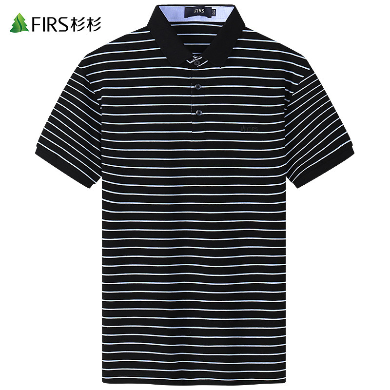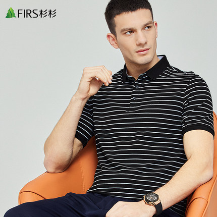 【纯棉弹力】杉杉男装短袖T恤男2025夏季新款海魂条纹翻领POLO衫