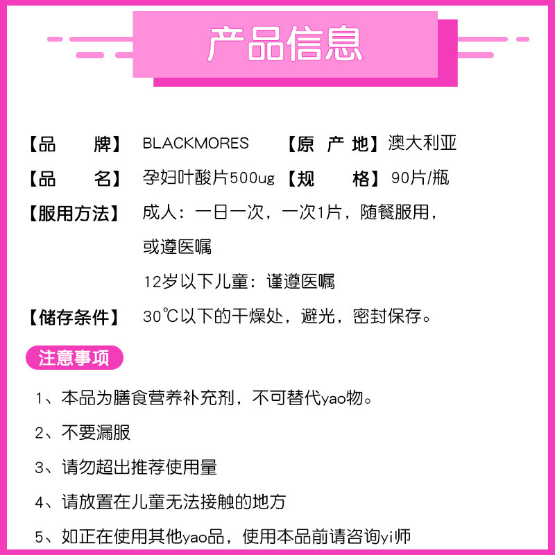 澳洲进口Blackmores澳佳宝叶酸片孕前备孕叶酸补充孕期营养90粒