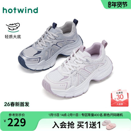 热风厚底老爹鞋女2026年春季新款户外网面透气女鞋百搭运动休闲鞋
