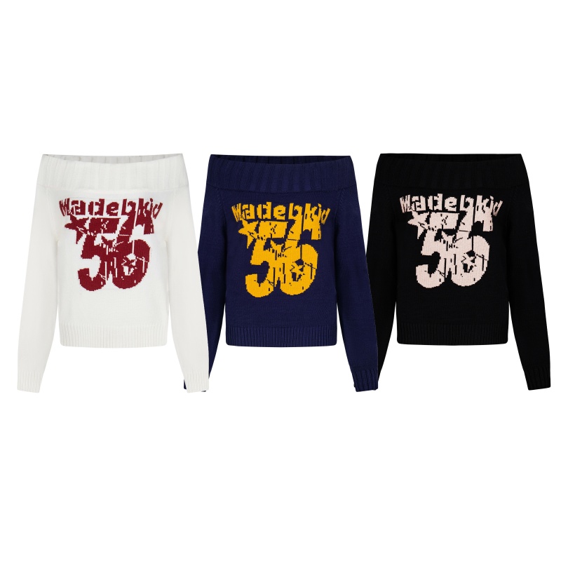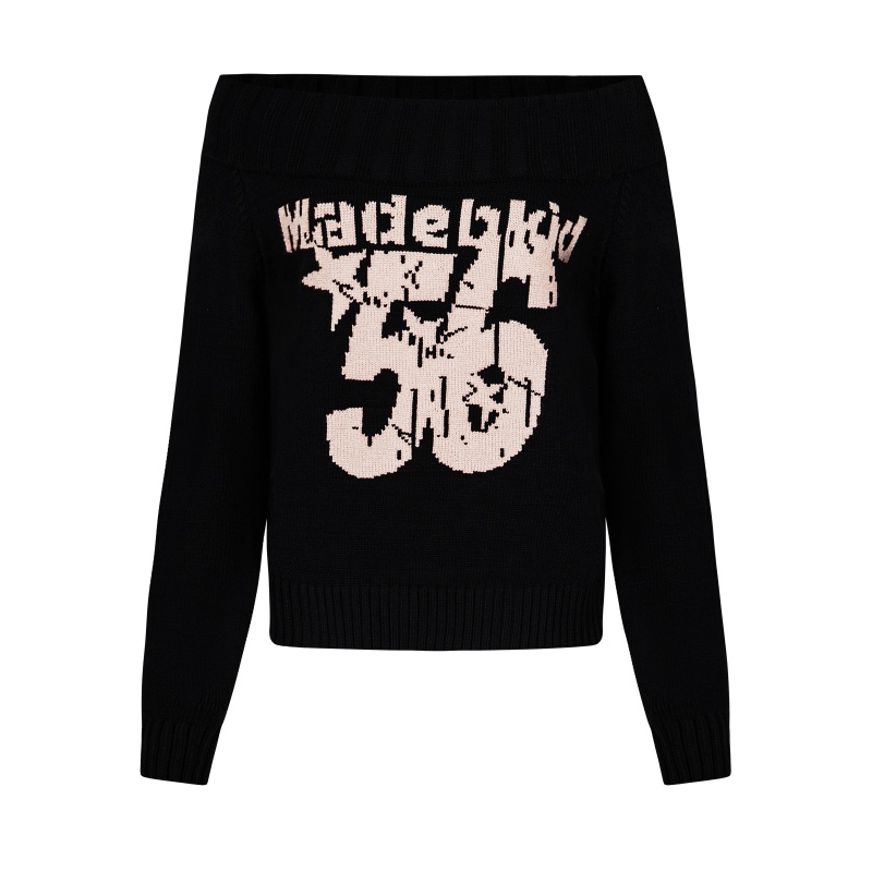 万千少女美式街头辣妹一字领露肩套头毛衣女冬2025修身针织衫上衣