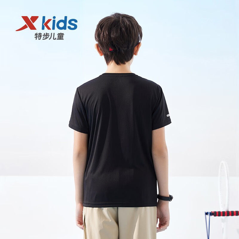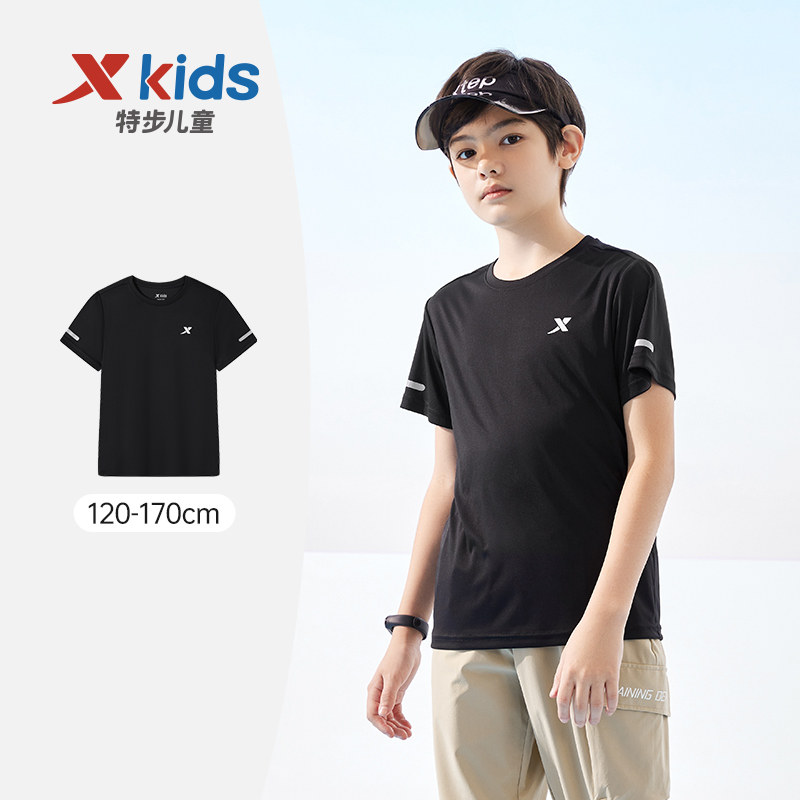 特步童装男童速干短袖t恤2025秋季新款儿童透气运动上衣大童夏装
