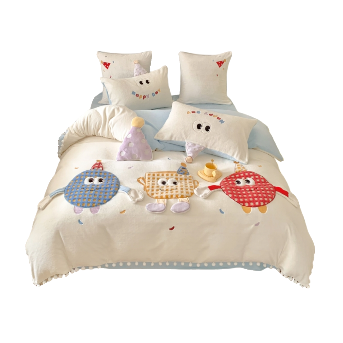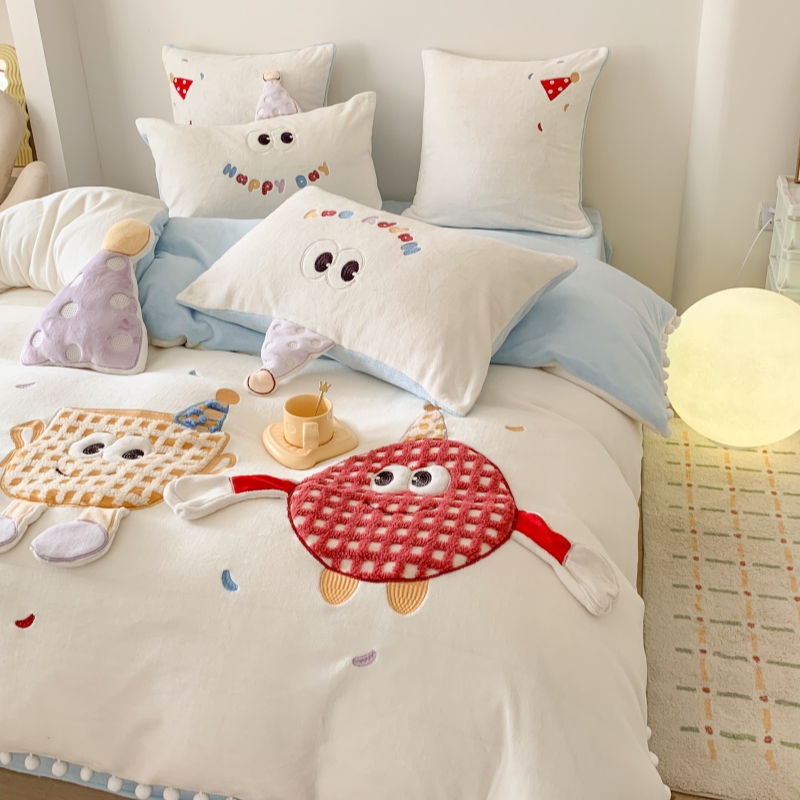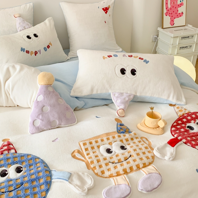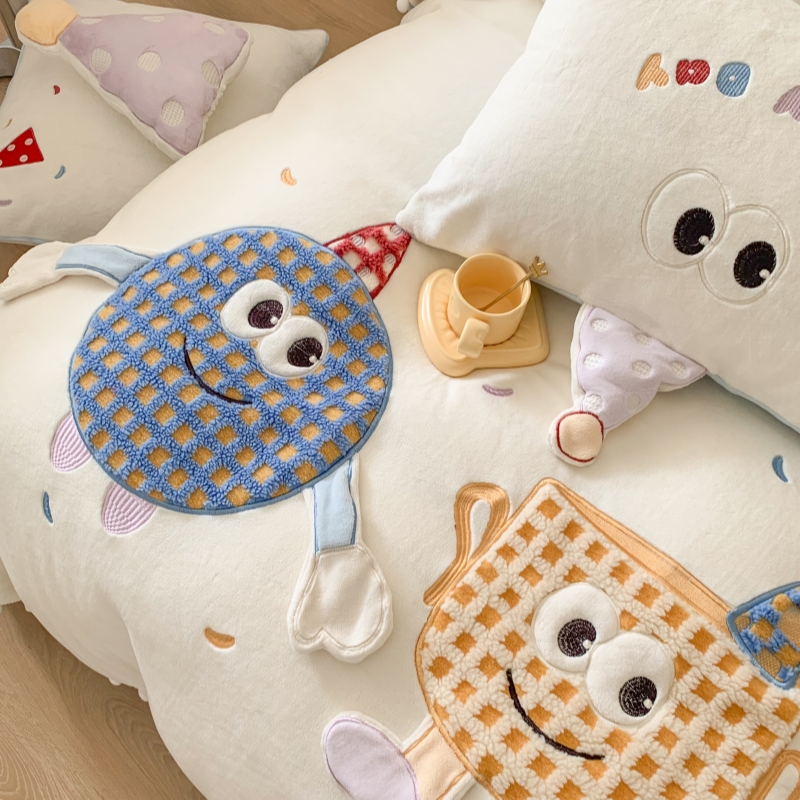 ins可爱少女心曲奇牛奶绒四件套卡通加厚双面珊瑚绒被套保暖床单4