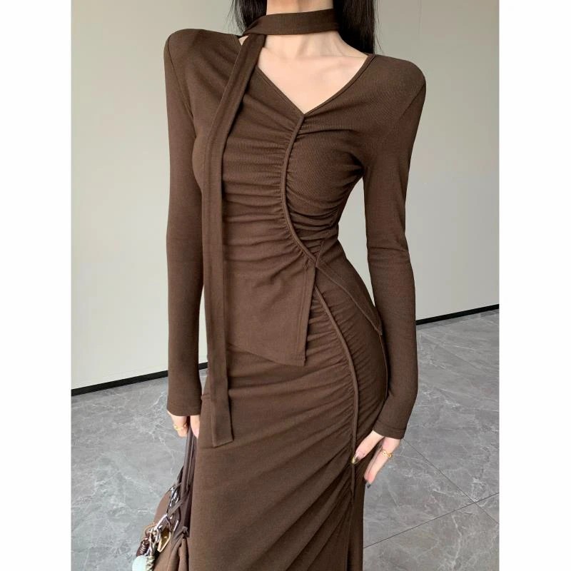 纪金其时髦纯色百搭套装女慵懒风韩系长袖上衣垂感休闲显瘦半身裙
