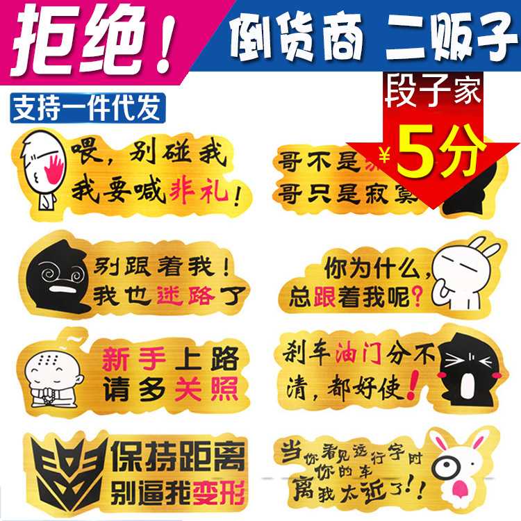 新款直销汽车个性贴纸 金色拉丝反光搞笑车贴 卡通幽默车身改装贴