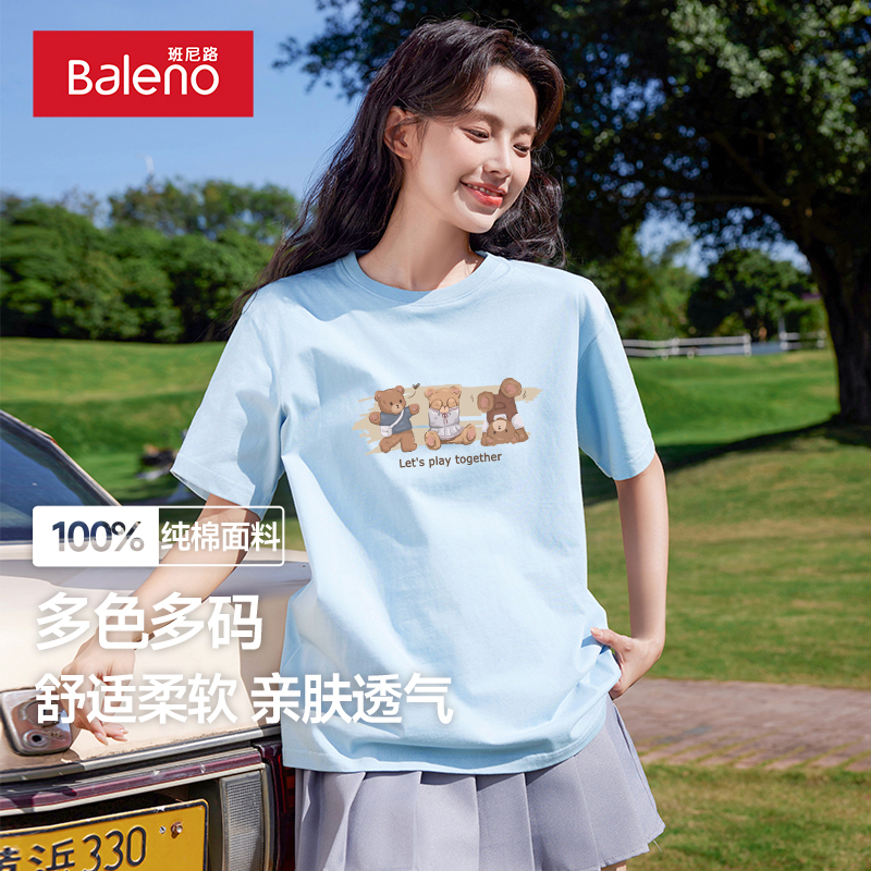 班尼路重磅纯棉短袖t恤女夏季薄款奶杏色宽松韩版上衣大码体恤衫Q