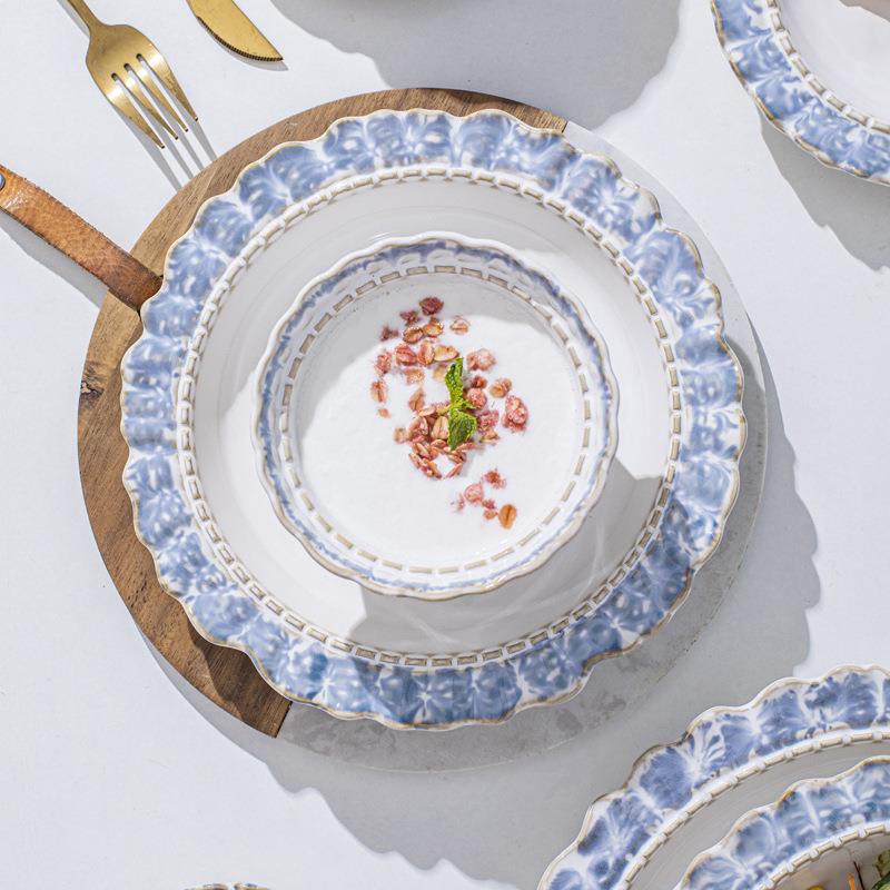 烟蓝餐具创意系列碗碟套装 窑变简约家用陶瓷釉下彩饭碗厂家