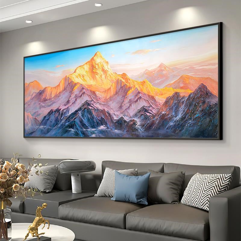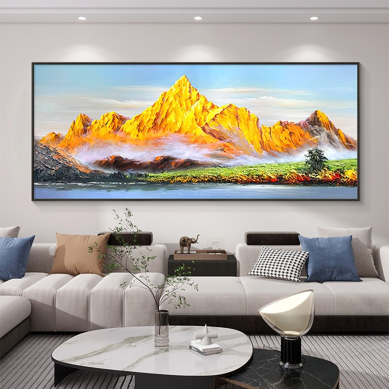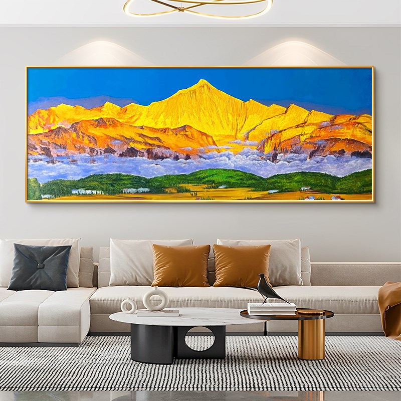 日照金山客厅装饰画轻奢高级感沙发背景墙挂画背有靠山手绘油画