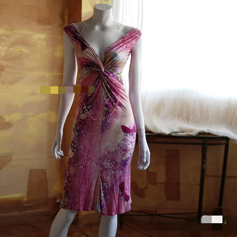 Winema晓雪 vintage 古着款 美人鱼 连衣裙扭结深v性感印花鱼尾裙