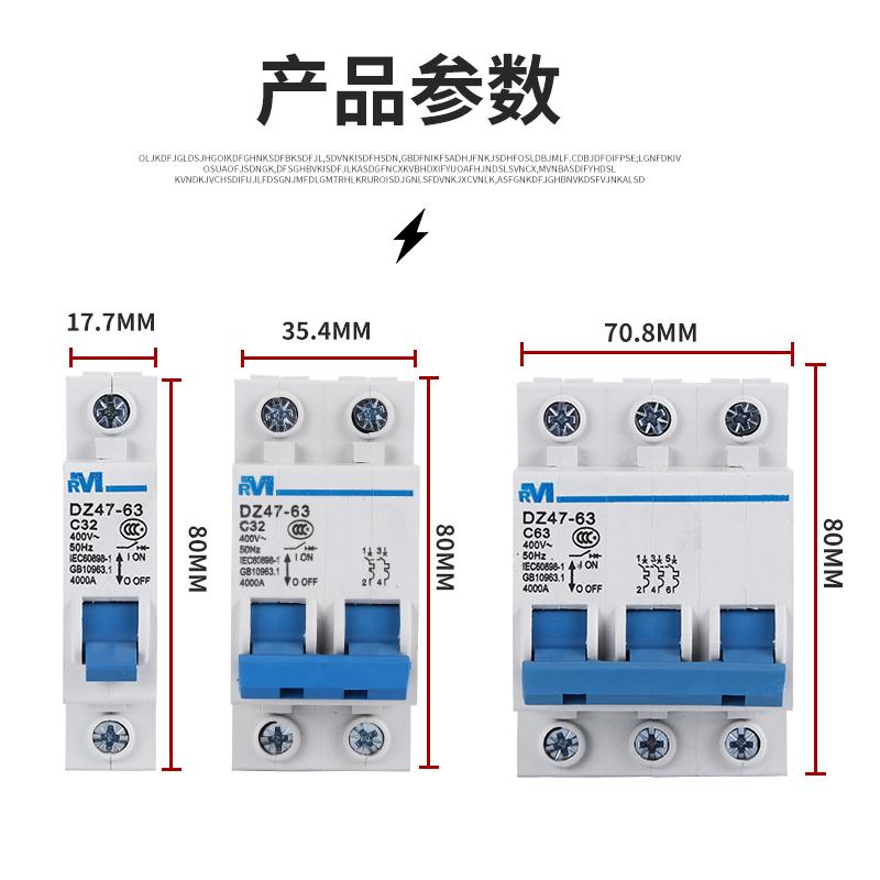 上海人民DZ47-63 1P2P3P4P空气开关家用C45小型断路器63A6A32空开