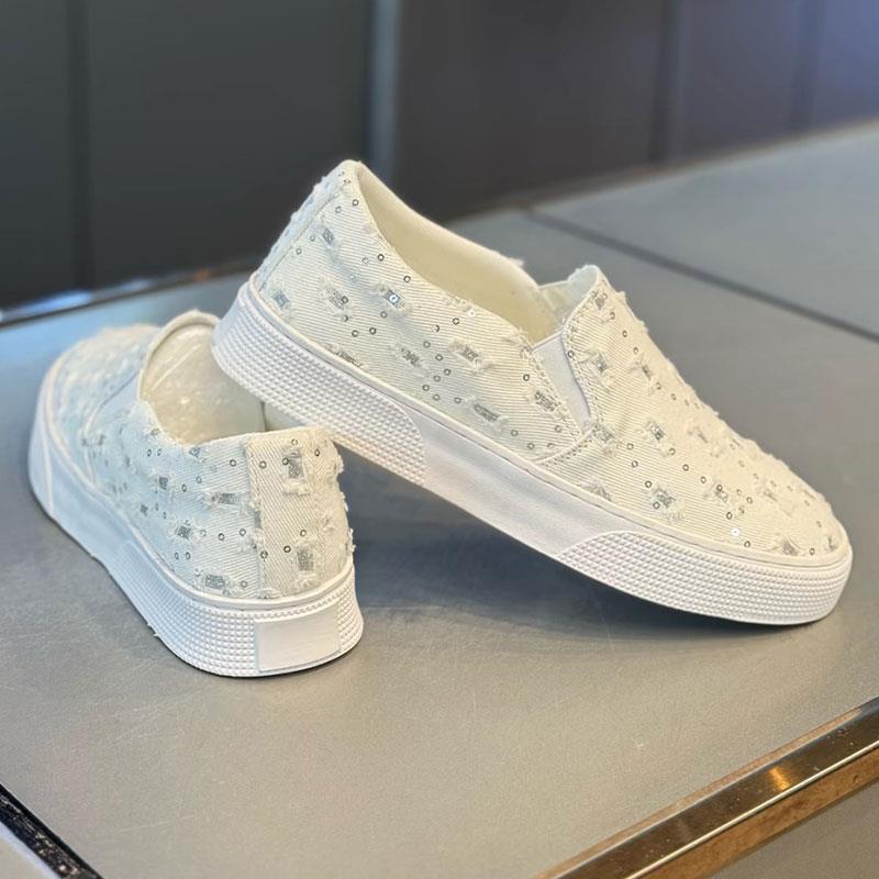 夏季透气薄款帆布小白鞋男一脚蹬休闲 板鞋春秋潮流懒人套脚乐福
