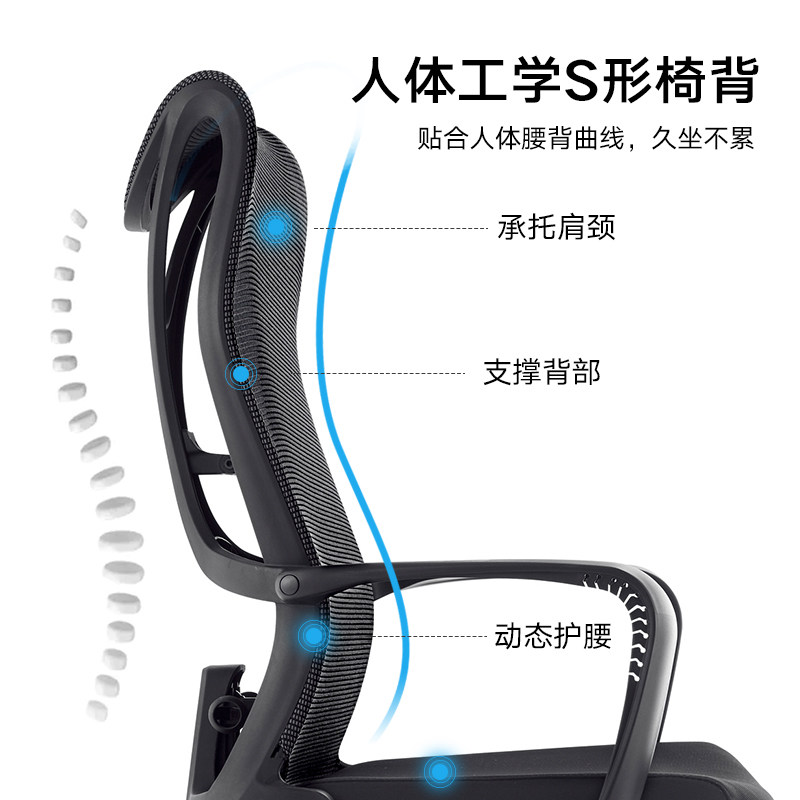 圣奥艾克电脑办公椅子护腰可躺午休人体工学座椅舒服家用久坐躺椅
