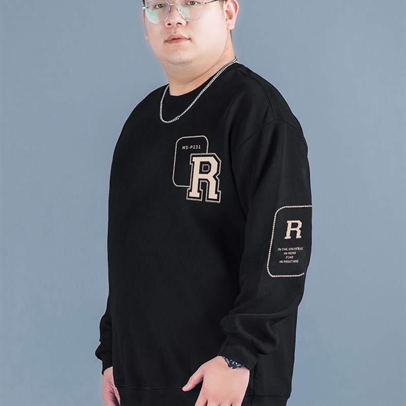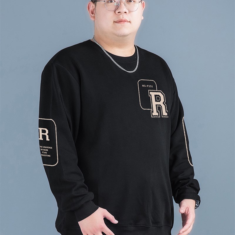黑色大码长袖t恤男春季卫衣新款加肥加大加厚圆领保暖宽松上衣男