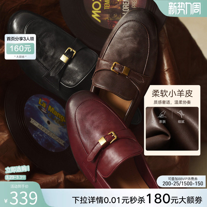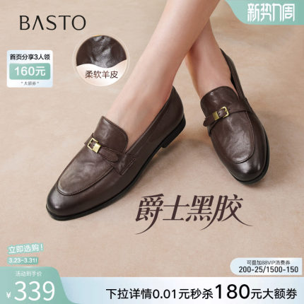 【爵士黑胶】百思图26春新款英伦超软羊皮乐福鞋老钱风皮鞋女单鞋