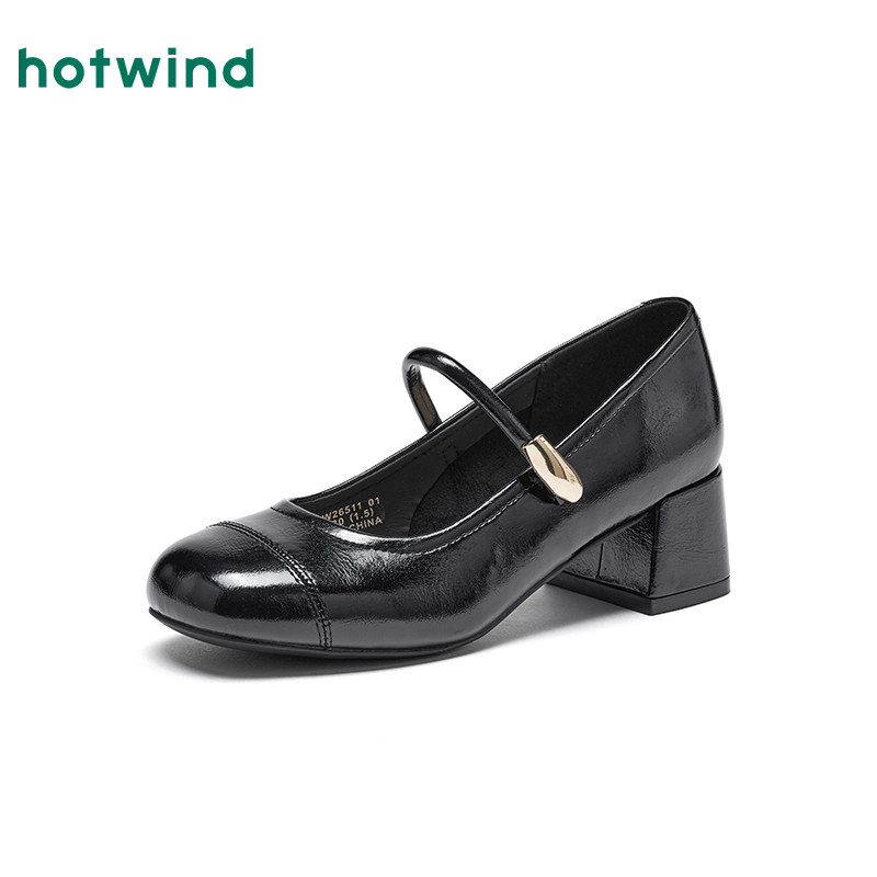 热风复古玛丽珍单鞋女2026年春季新款红色粗跟浅口女鞋百搭高跟鞋