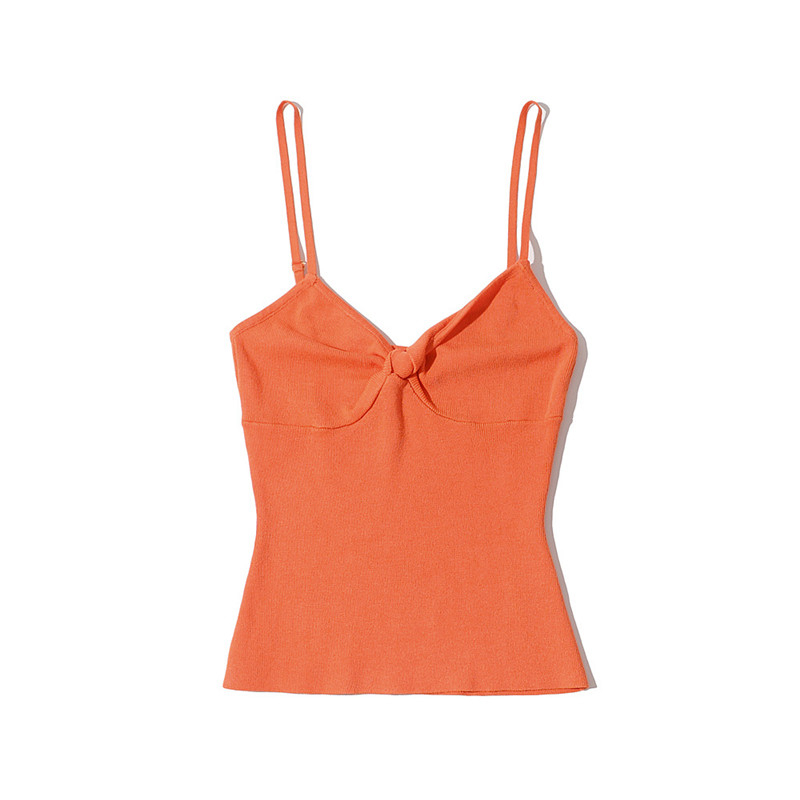 欧美辣妹风纽结针织吊带打底内搭v领小背心女夏薄款外穿短款上衣