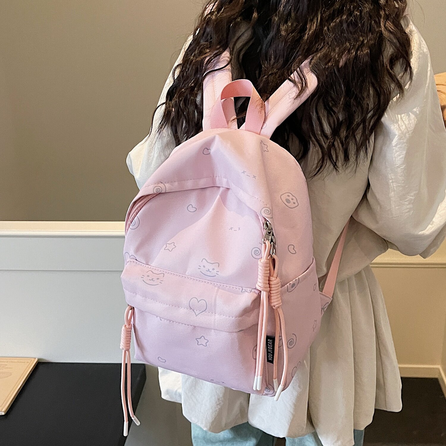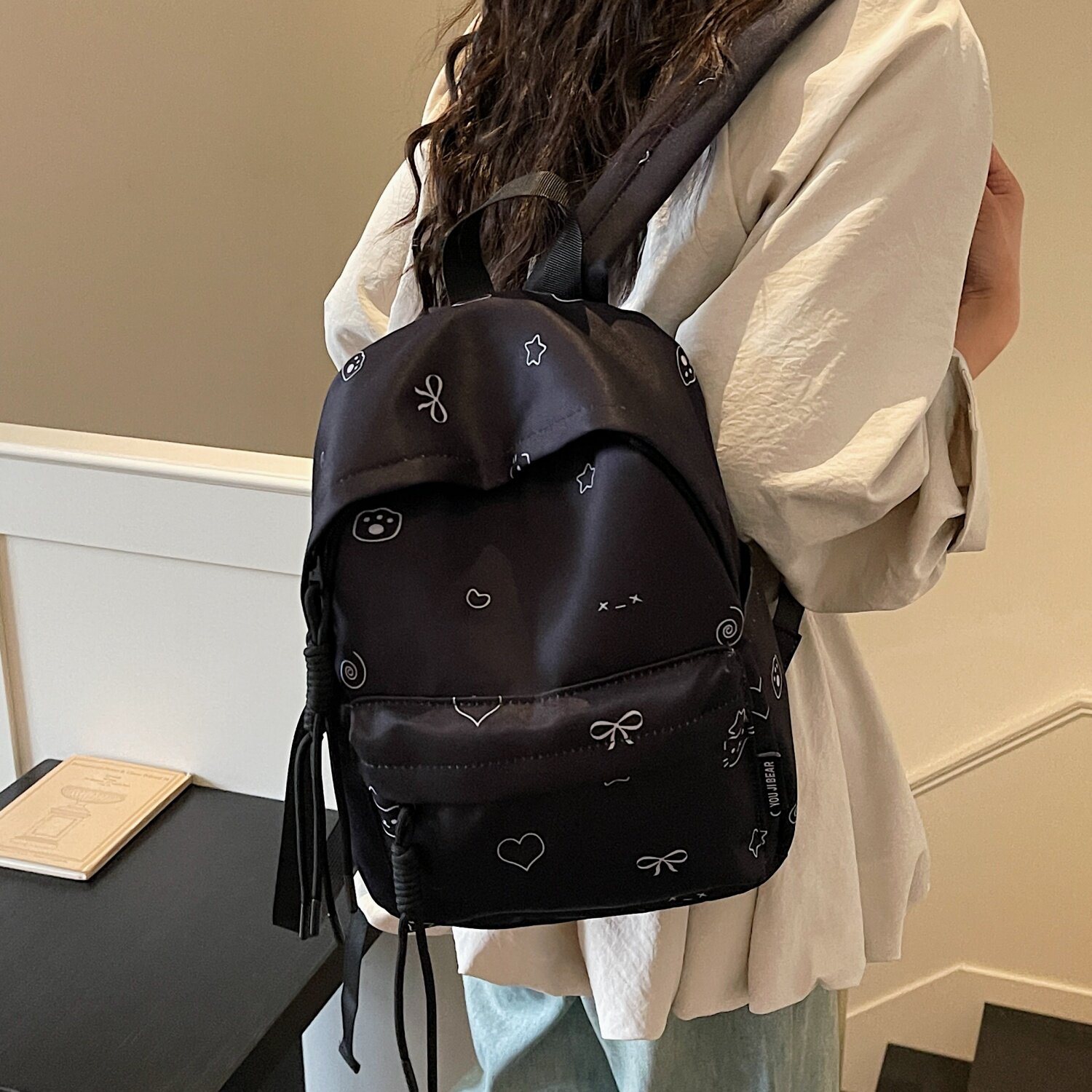日系卡通双肩包女轻便大容量通勤学生书包百搭外出旅行尼龙小背包