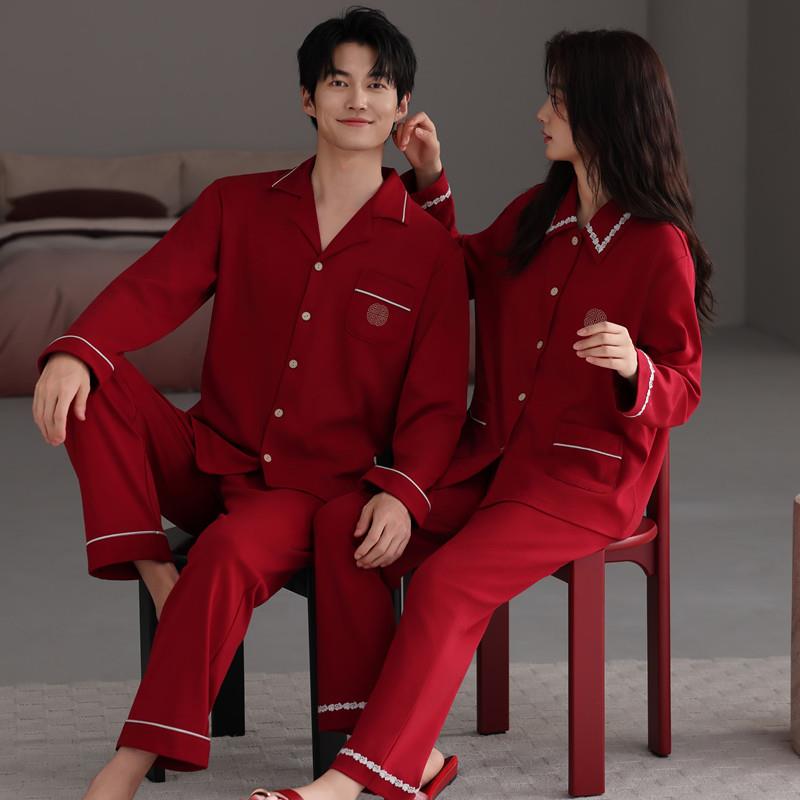 长袖情侣春秋红色新婚2025套装女新款纯棉款秋季男士喜庆睡衣结婚