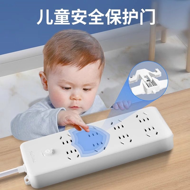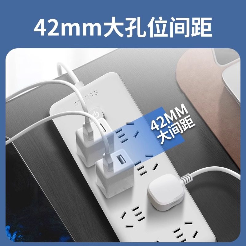 飞利浦插座插排接线板多孔面板延长线家用大学生宿舍用带线拖线板