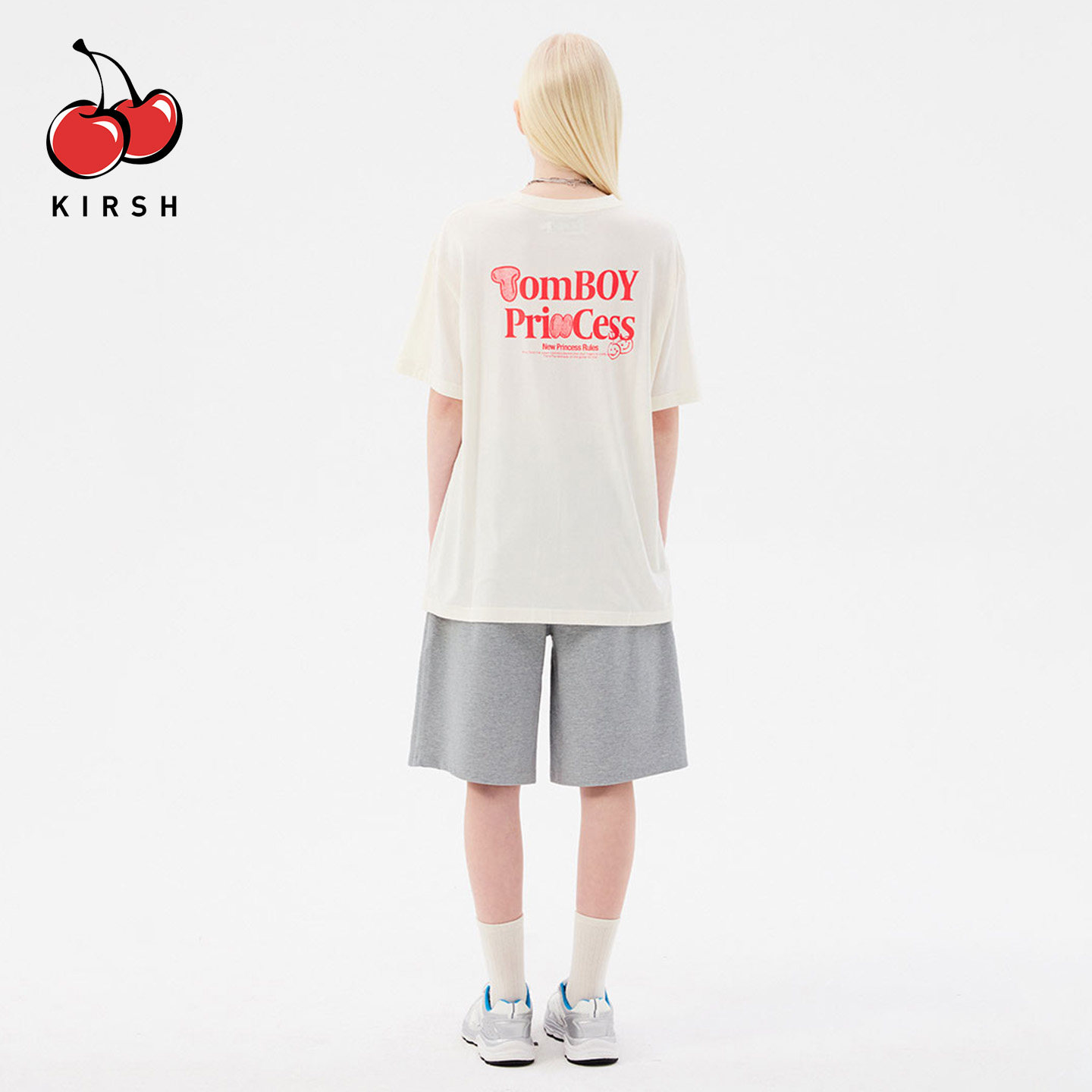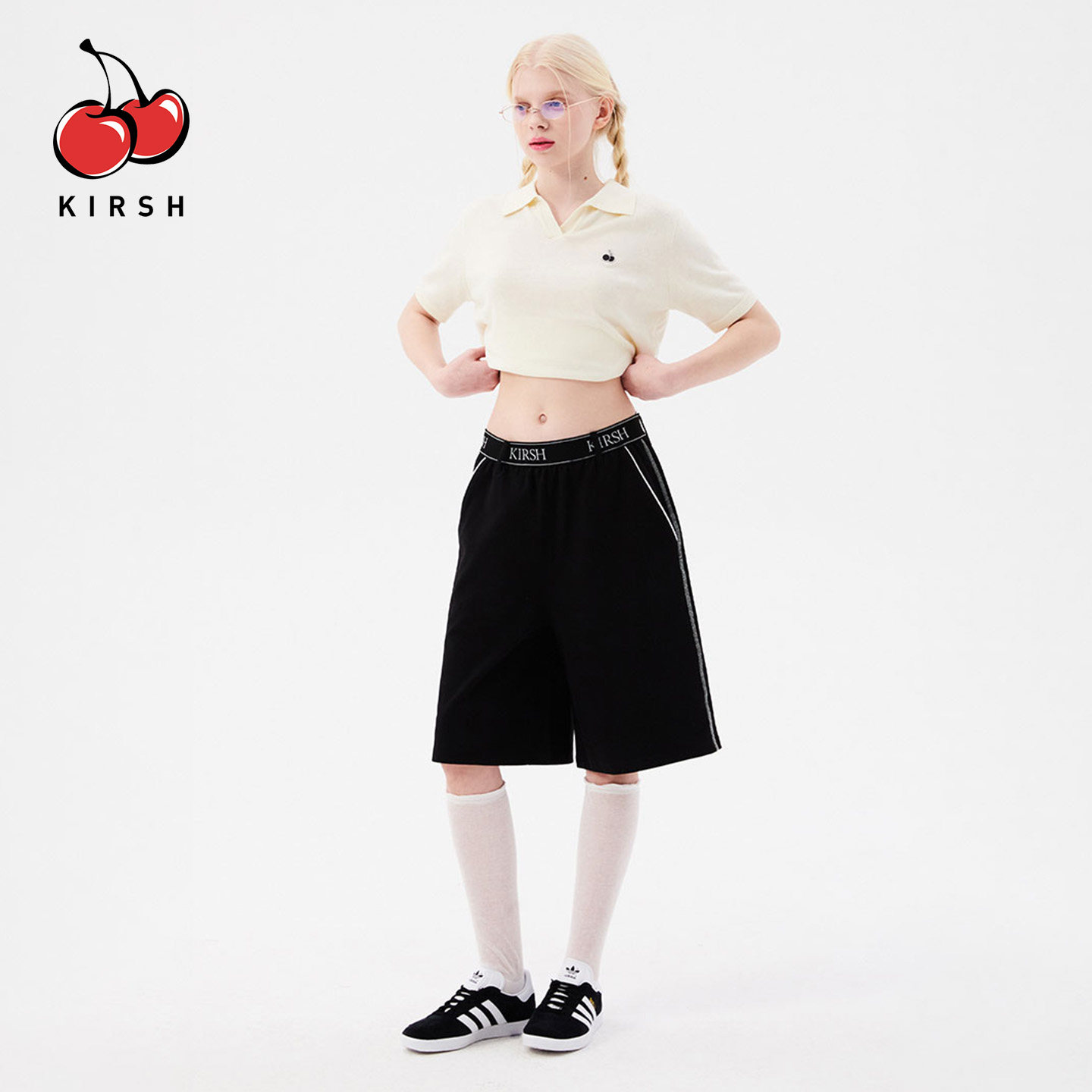 KIRSH简约风宽松休闲中高腰短裤女夏季松紧腰撞色拼接七分阔腿裤