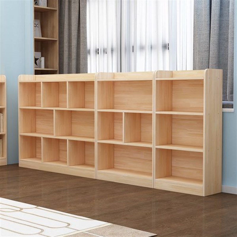 松木幼儿园置物架客厅置物架简易定制儿童学生矮书柜实木书架落地