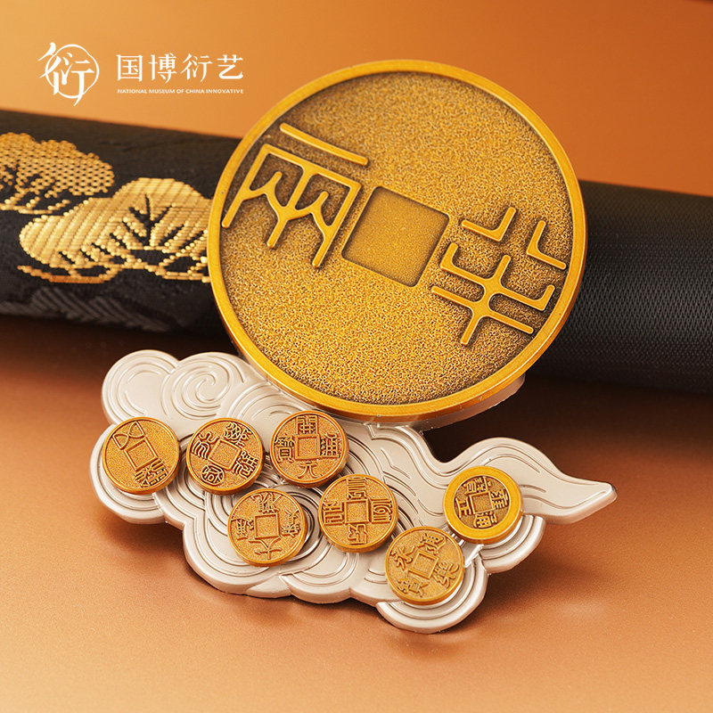 中国国家博物馆一起转大钱齿轮旋转冰箱贴铜钱钱币齿轮收藏小礼物