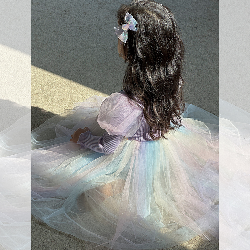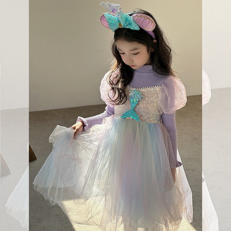 女童美人鱼公主裙春秋儿童加厚毛衣连衣裙小女孩高端生日礼服裙子