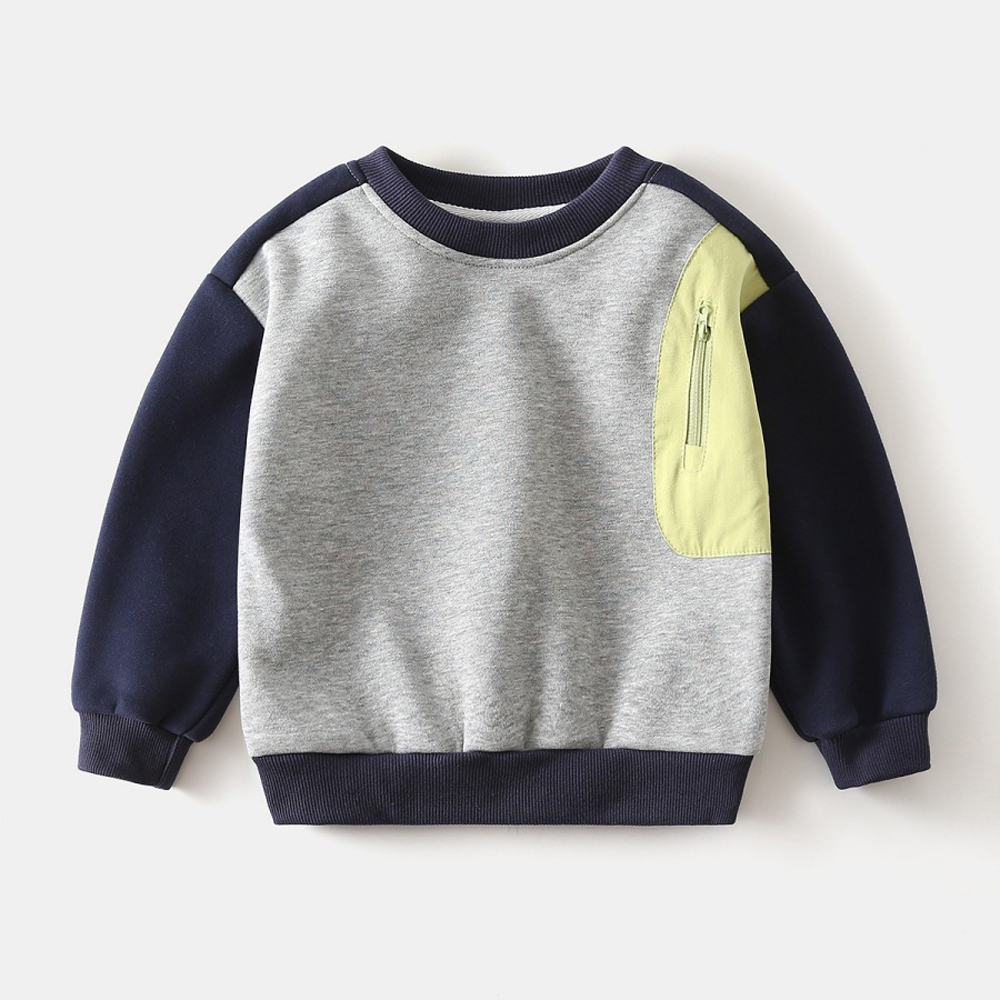 男童加绒卫衣一体绒秋冬款2025新款韩版男孩拼色宝宝上衣儿童外套