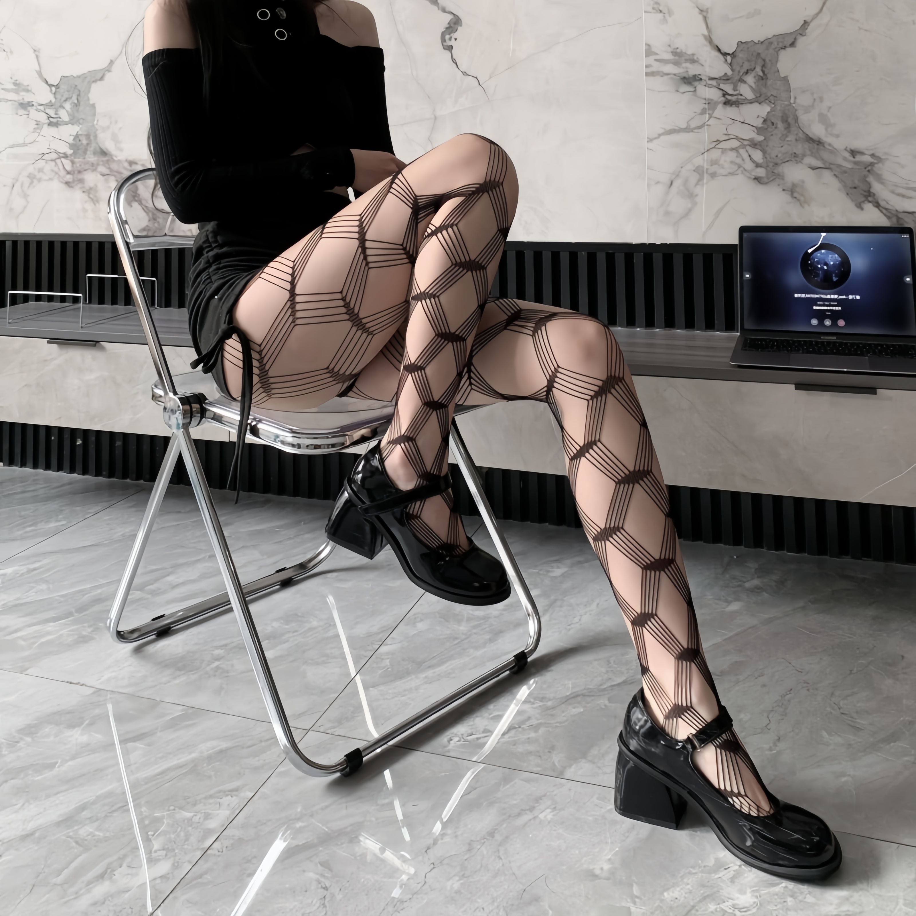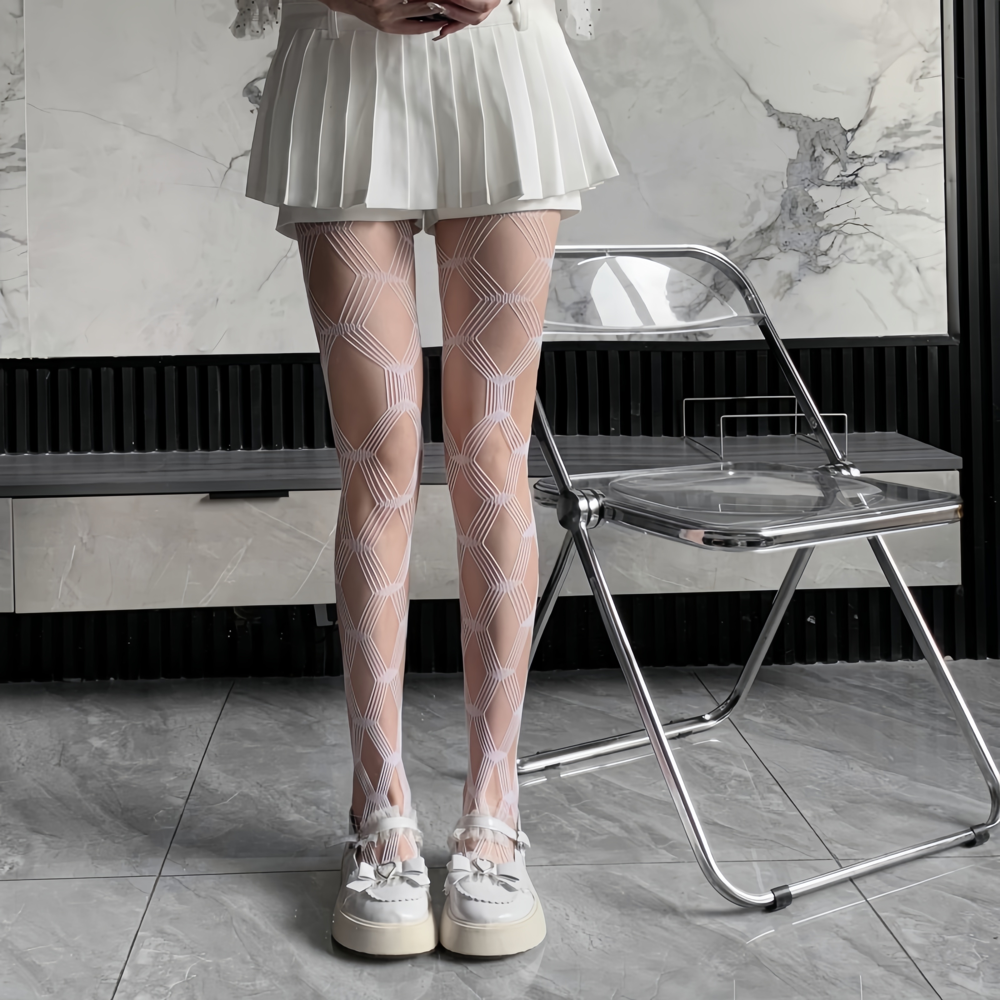 性感渔网袜女超薄新款潮流大网格袜白色菱形镂空连体防勾丝连裤袜