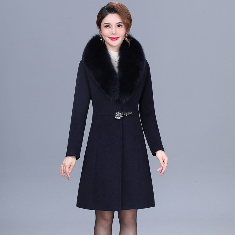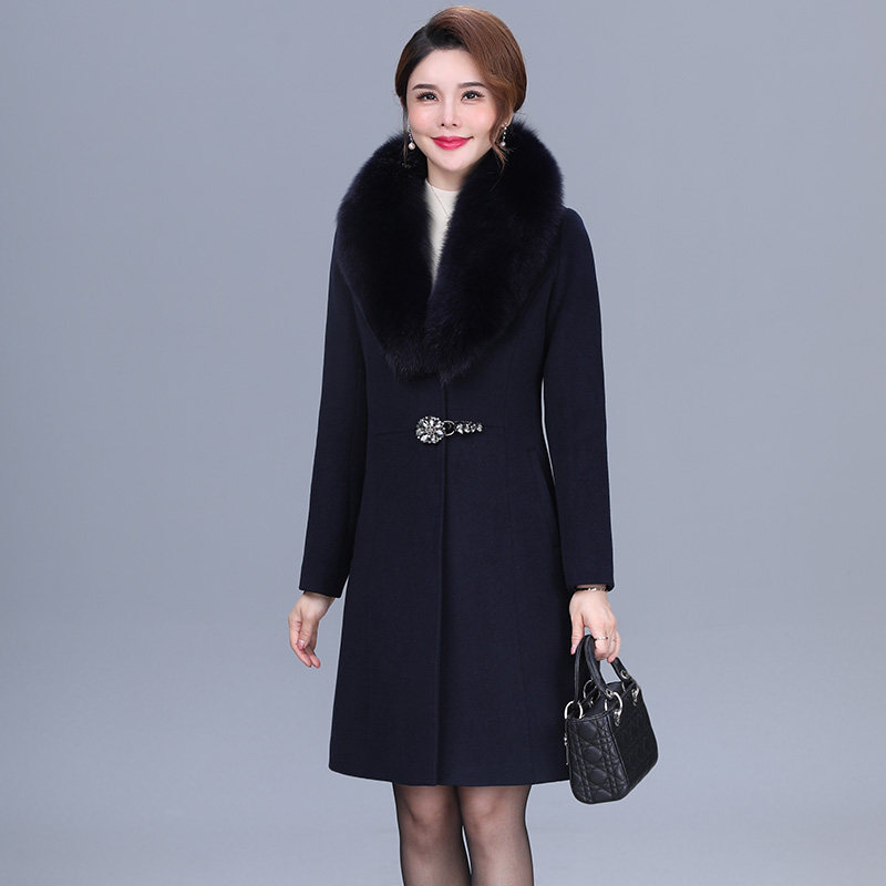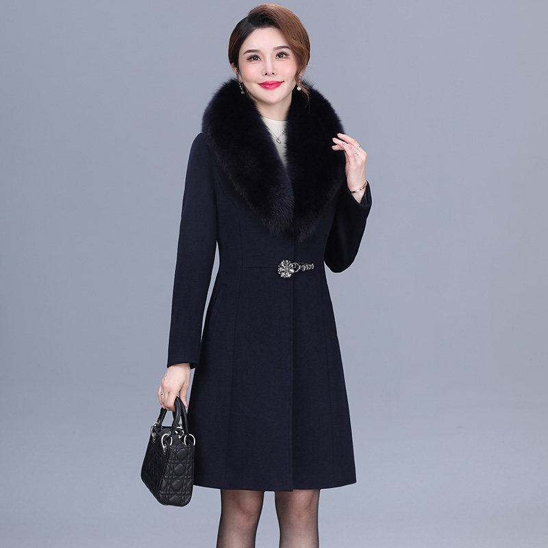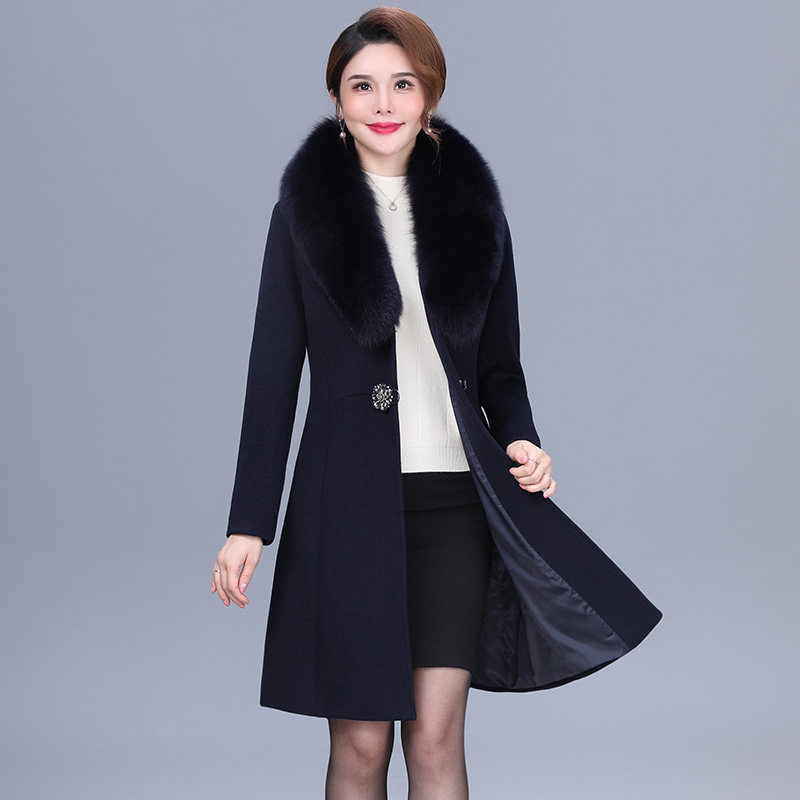 加棉加厚狐狸毛领羊绒大衣中长款中年妈妈羊毛呢子外套女长款过膝