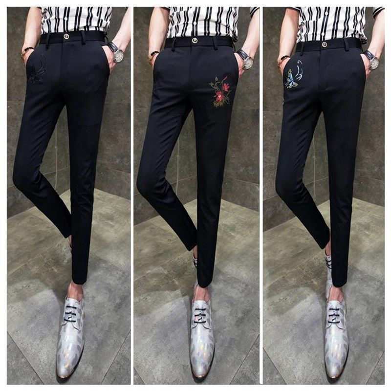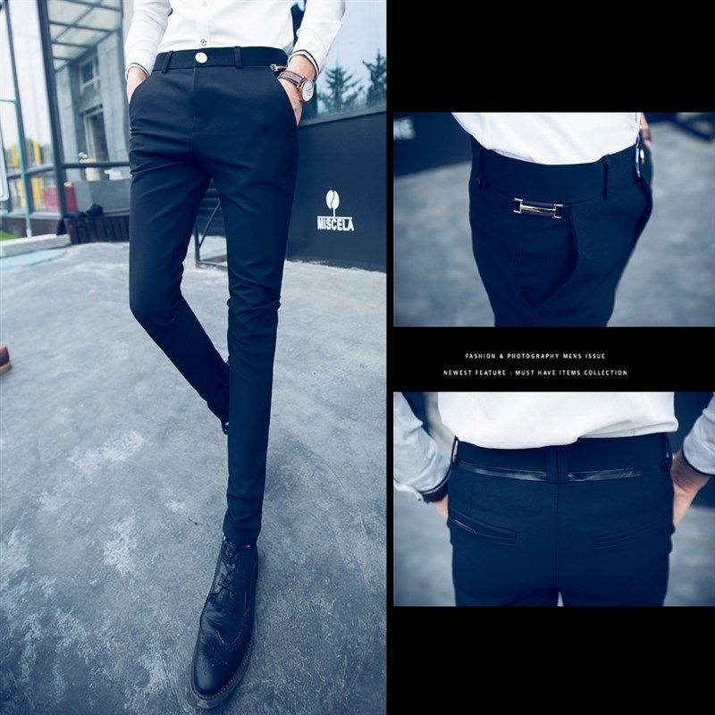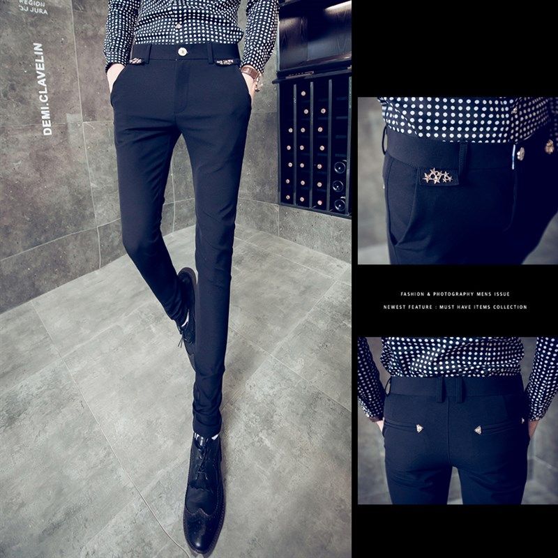 2025春季男士小码休闲裤韩版修身夜店潮男发型师小脚紧身弹性长裤