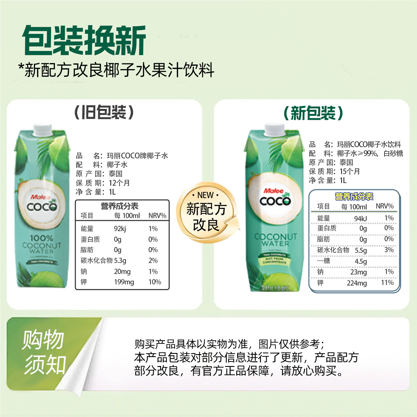 Malee进口泰国新配方椰青椰子水99%家用款1L大瓶装玛丽椰子水饮料