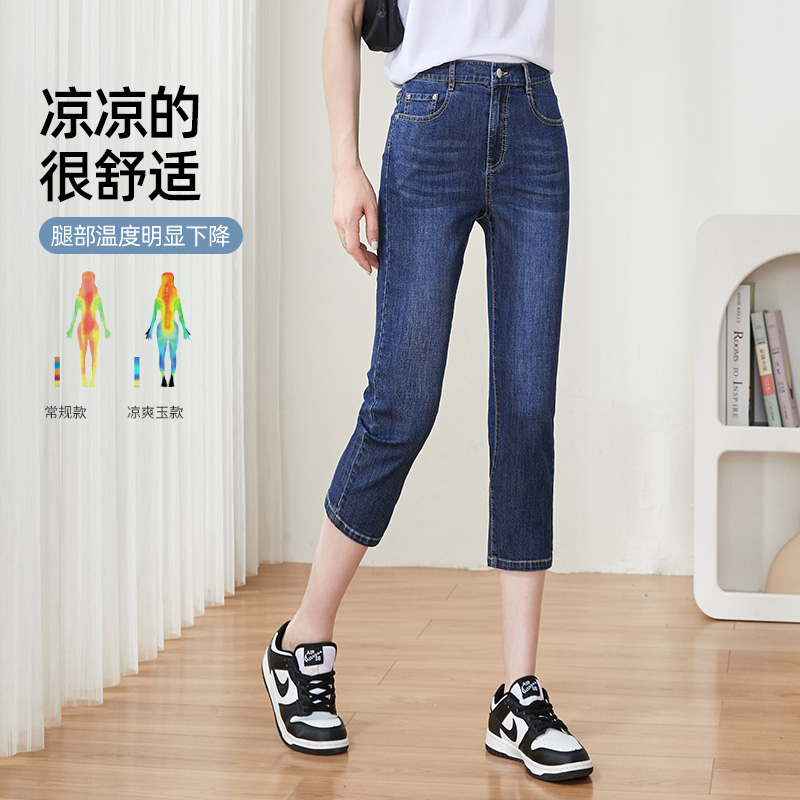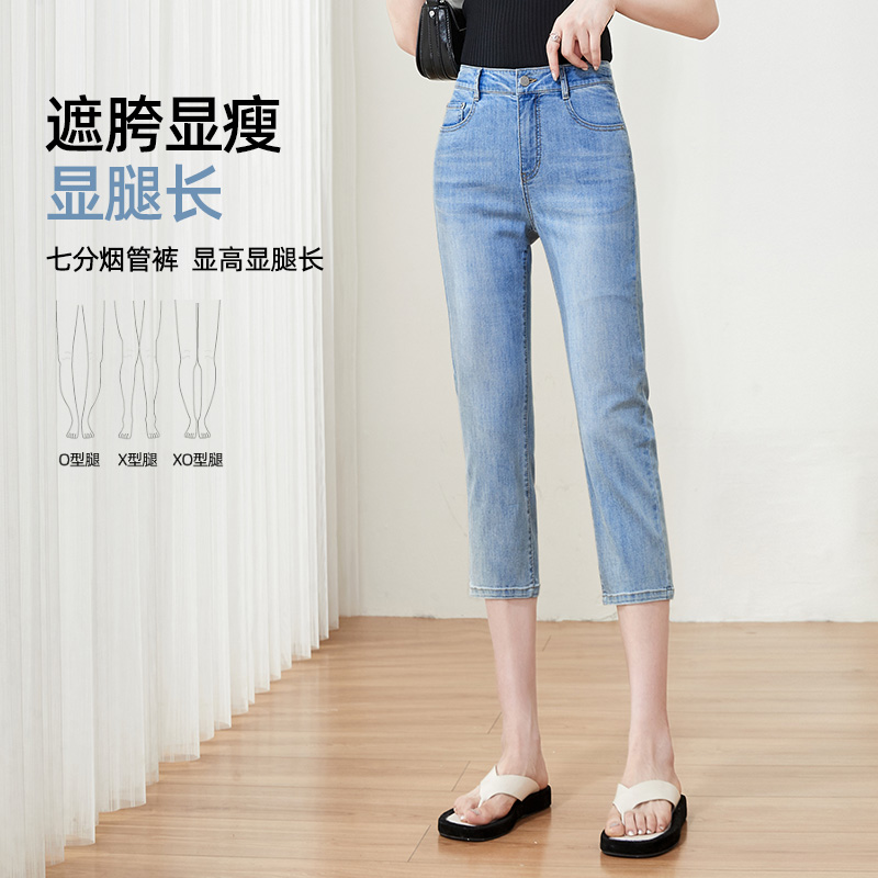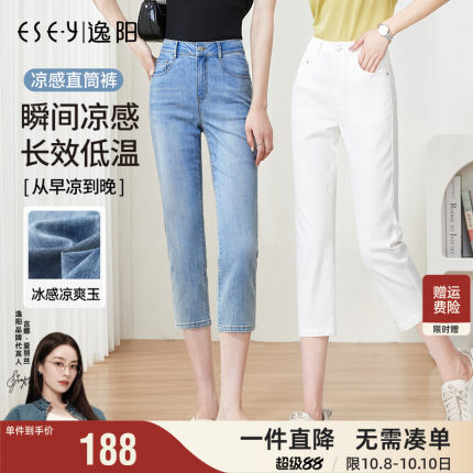 逸阳女七分直筒牛仔裤