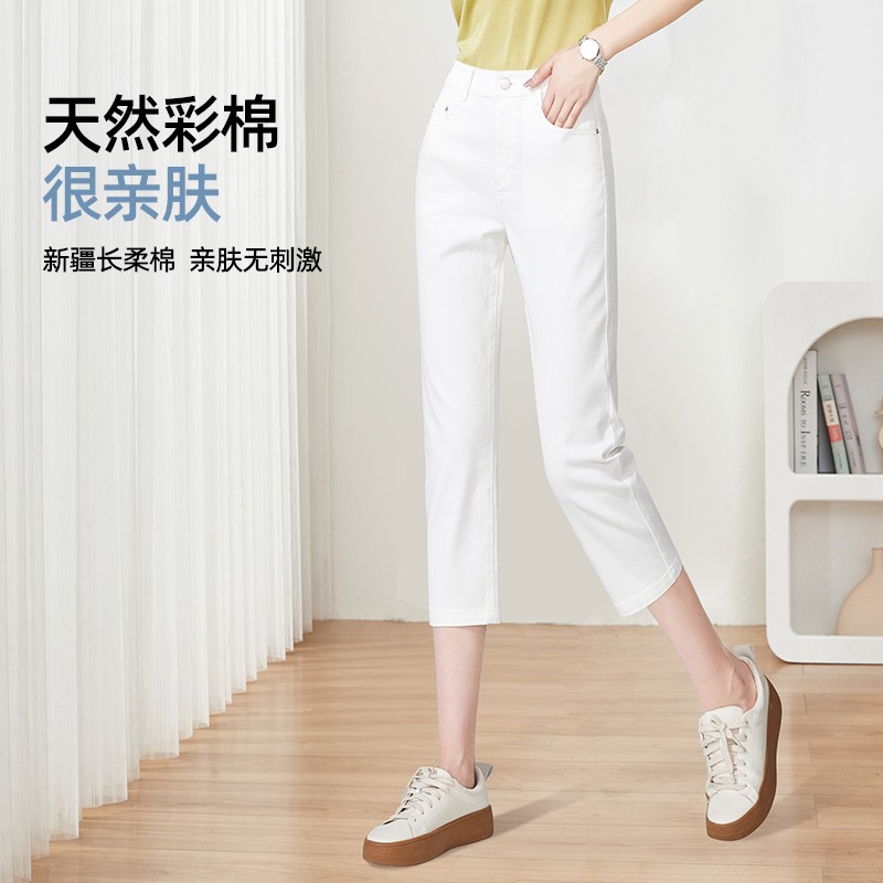 逸阳女白色修身直筒牛仔裤2025夏季新款显瘦铅笔凉爽百搭七分裤子